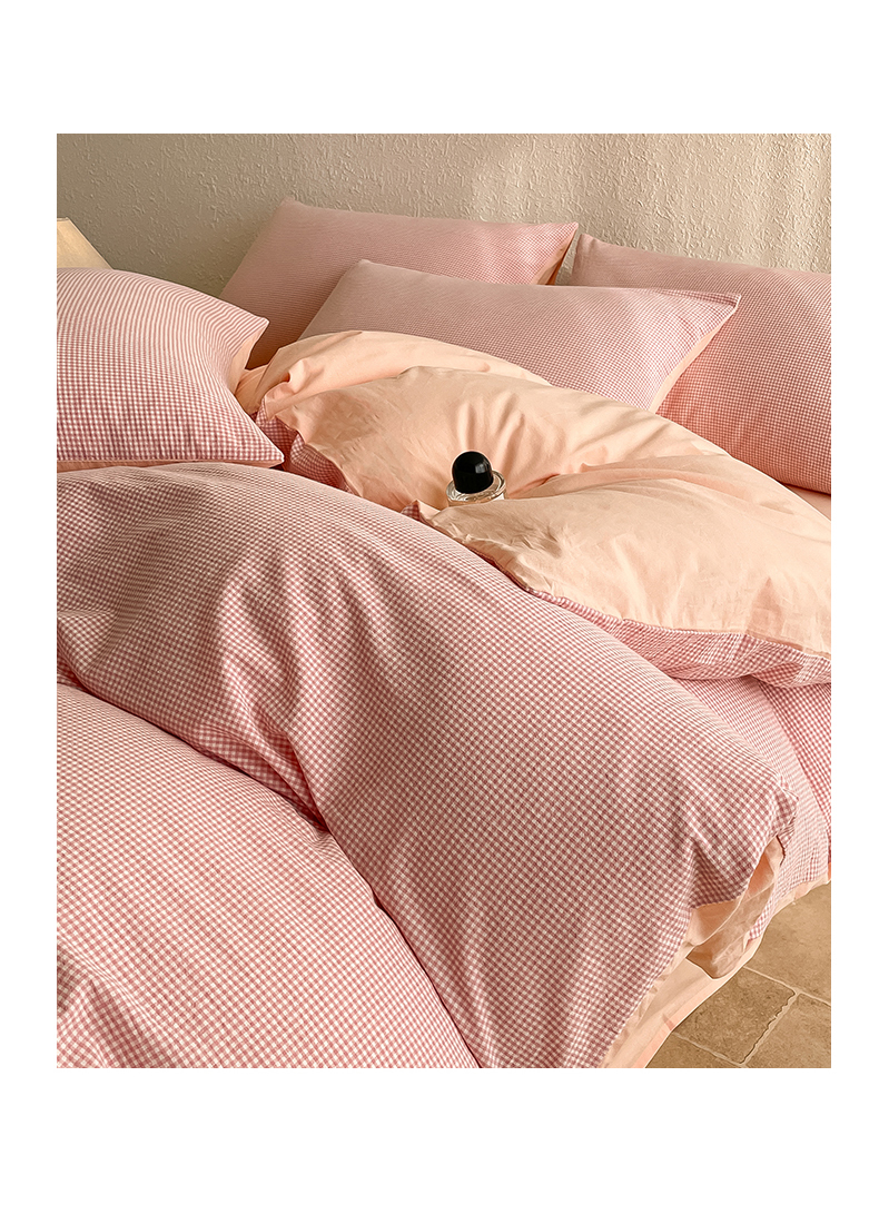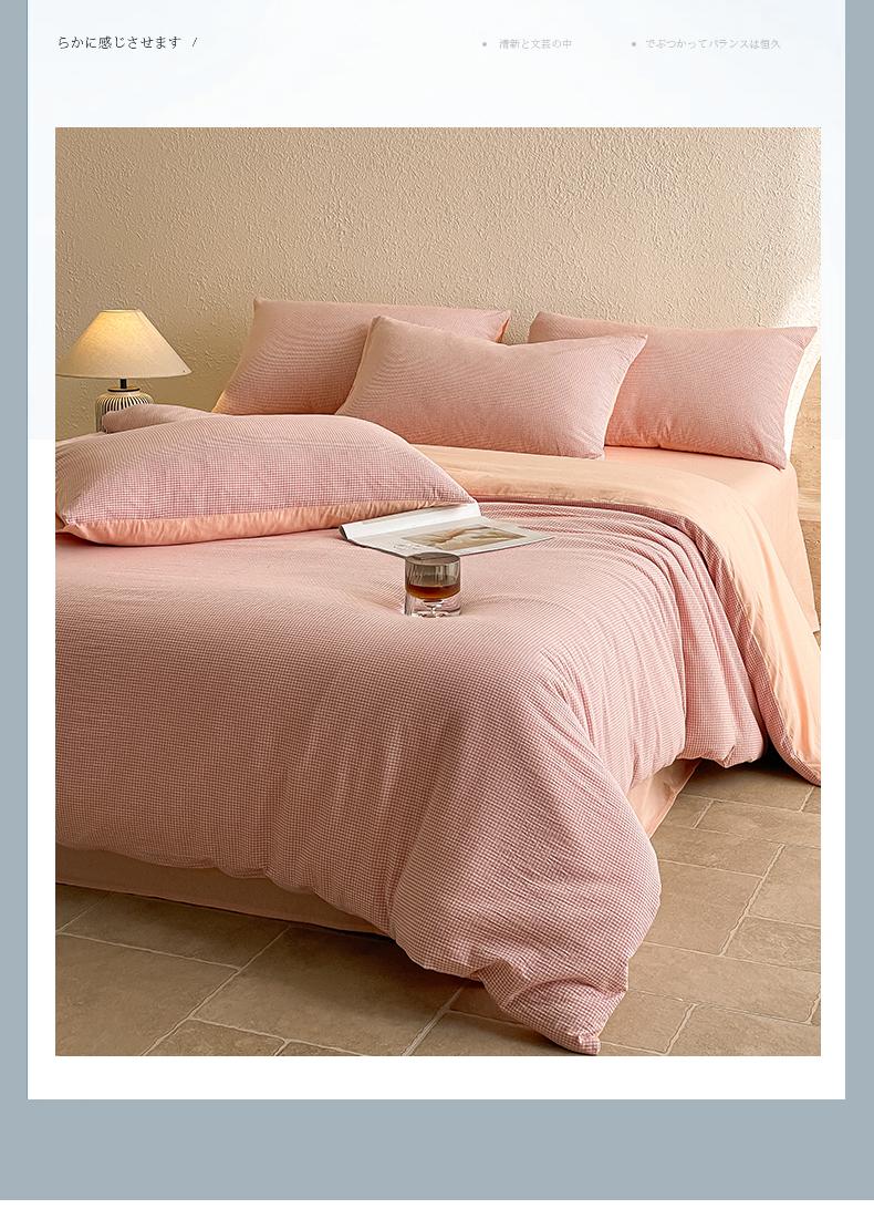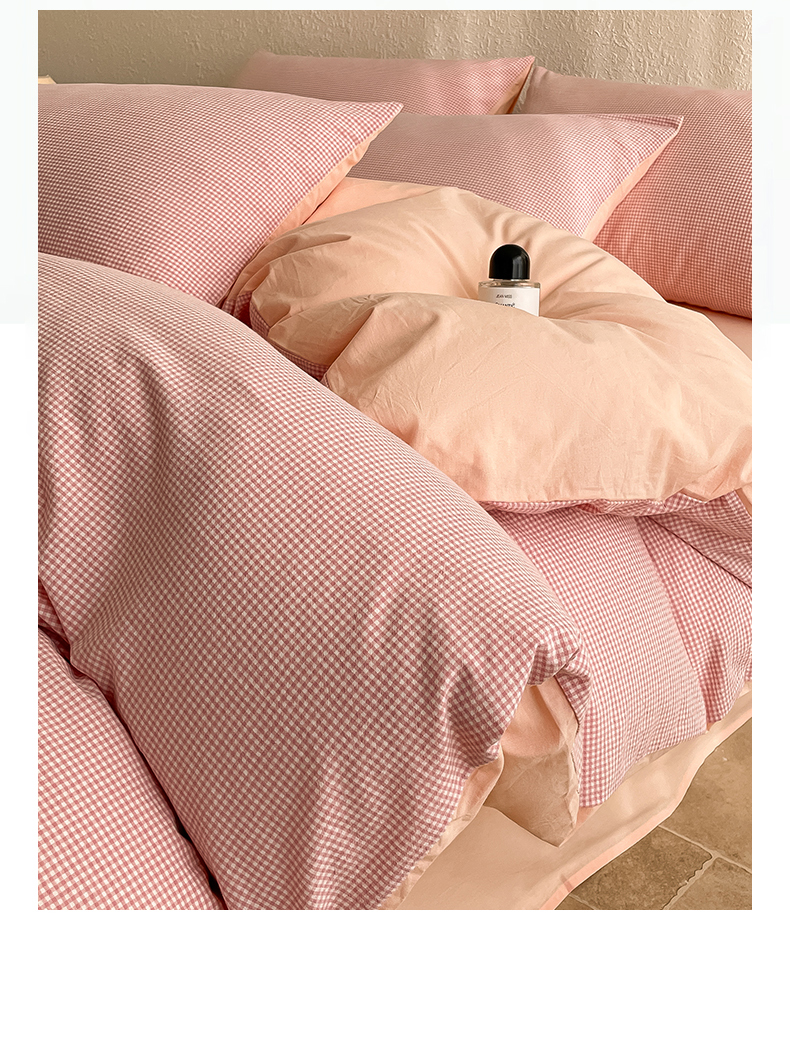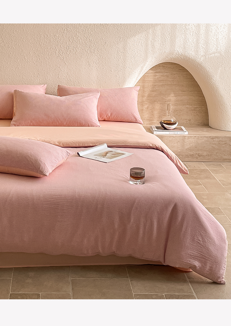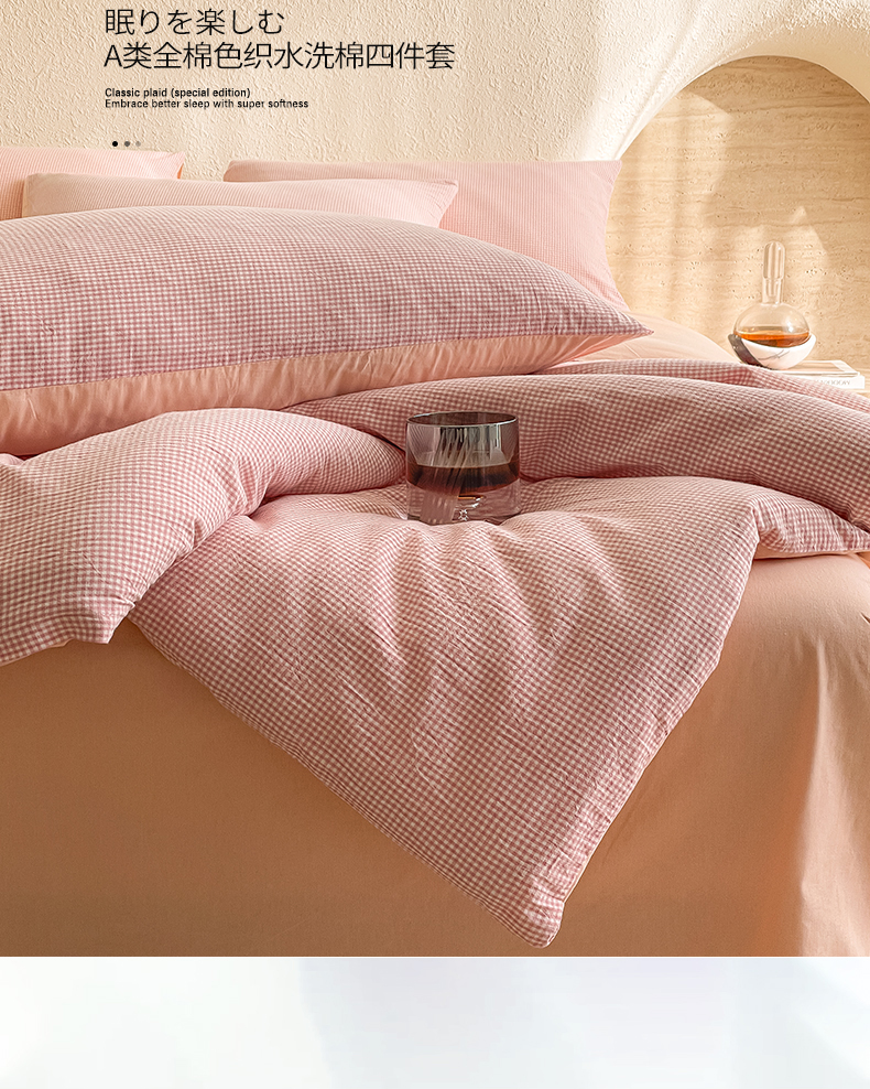 曲之慕 2025新款简约纯色全棉纯棉色织水洗棉四件套 维希格调-粉
