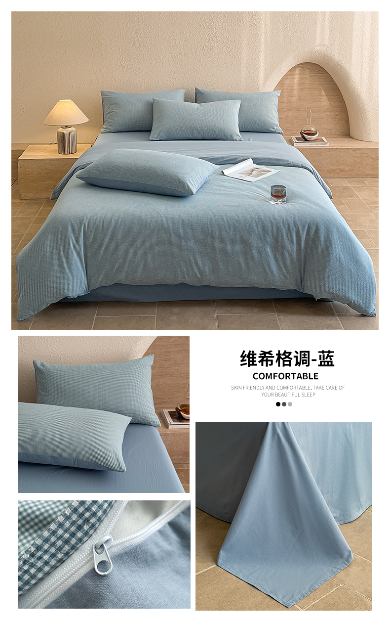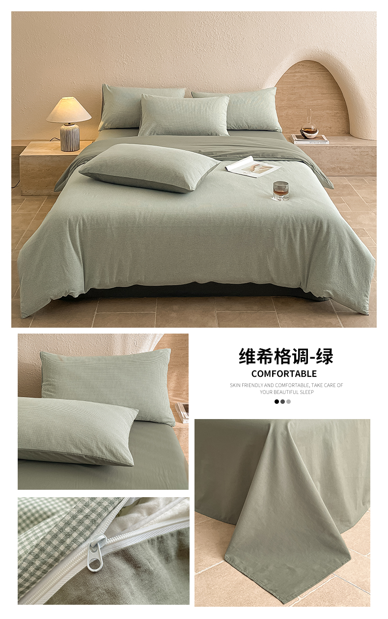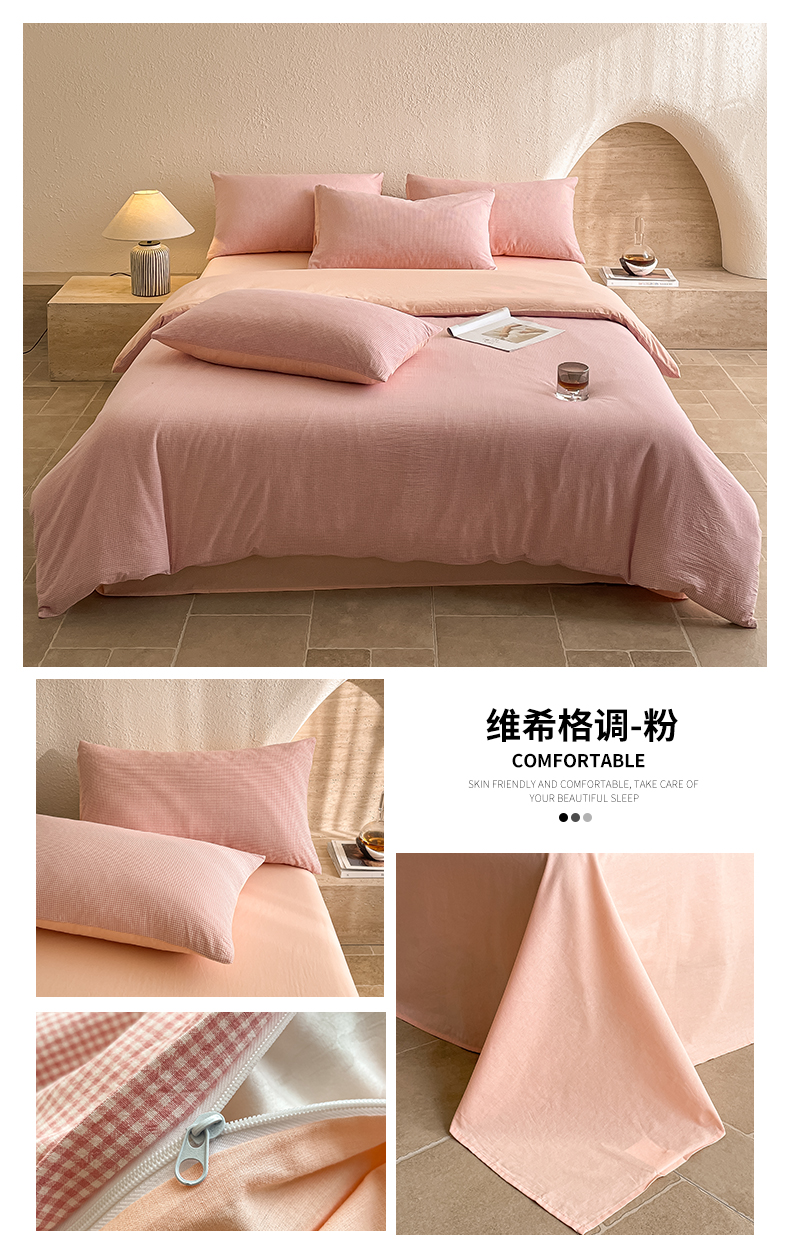 商品名称:曲之慕 2025新款简约纯色全棉纯棉色织水洗棉四件套 维希格调-粉