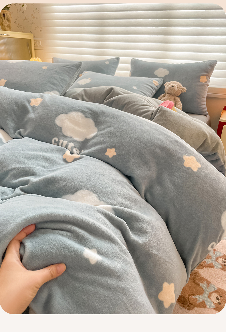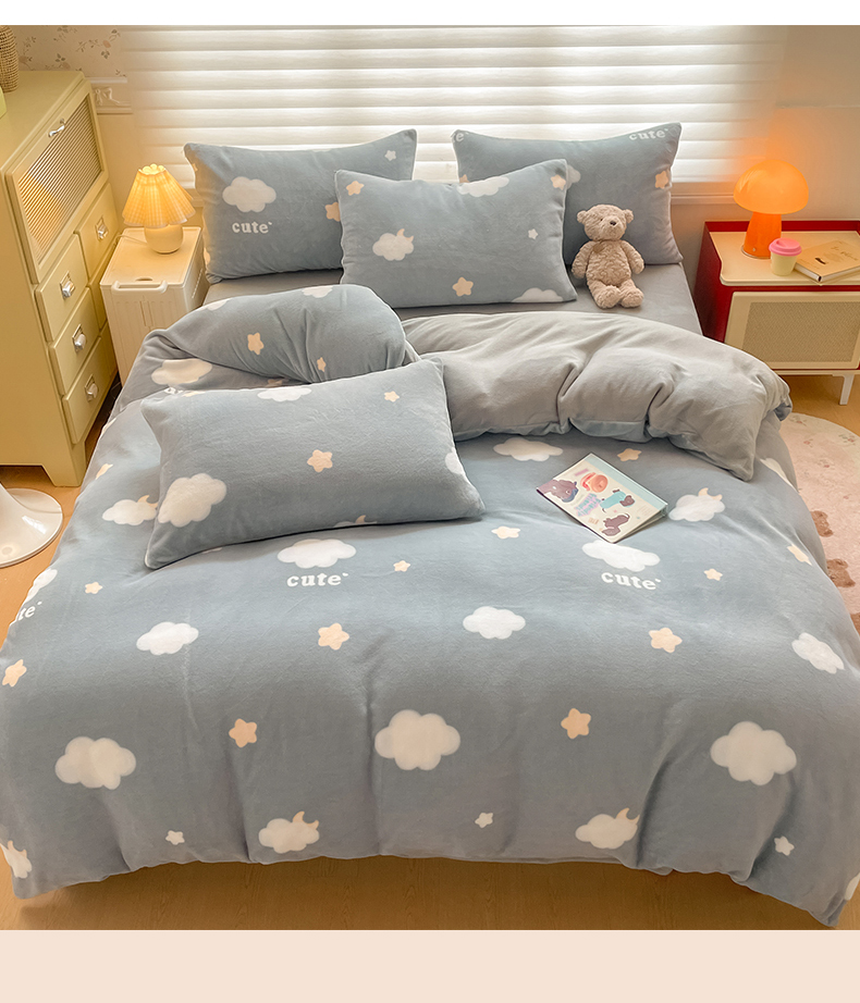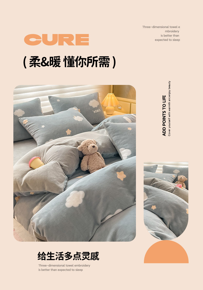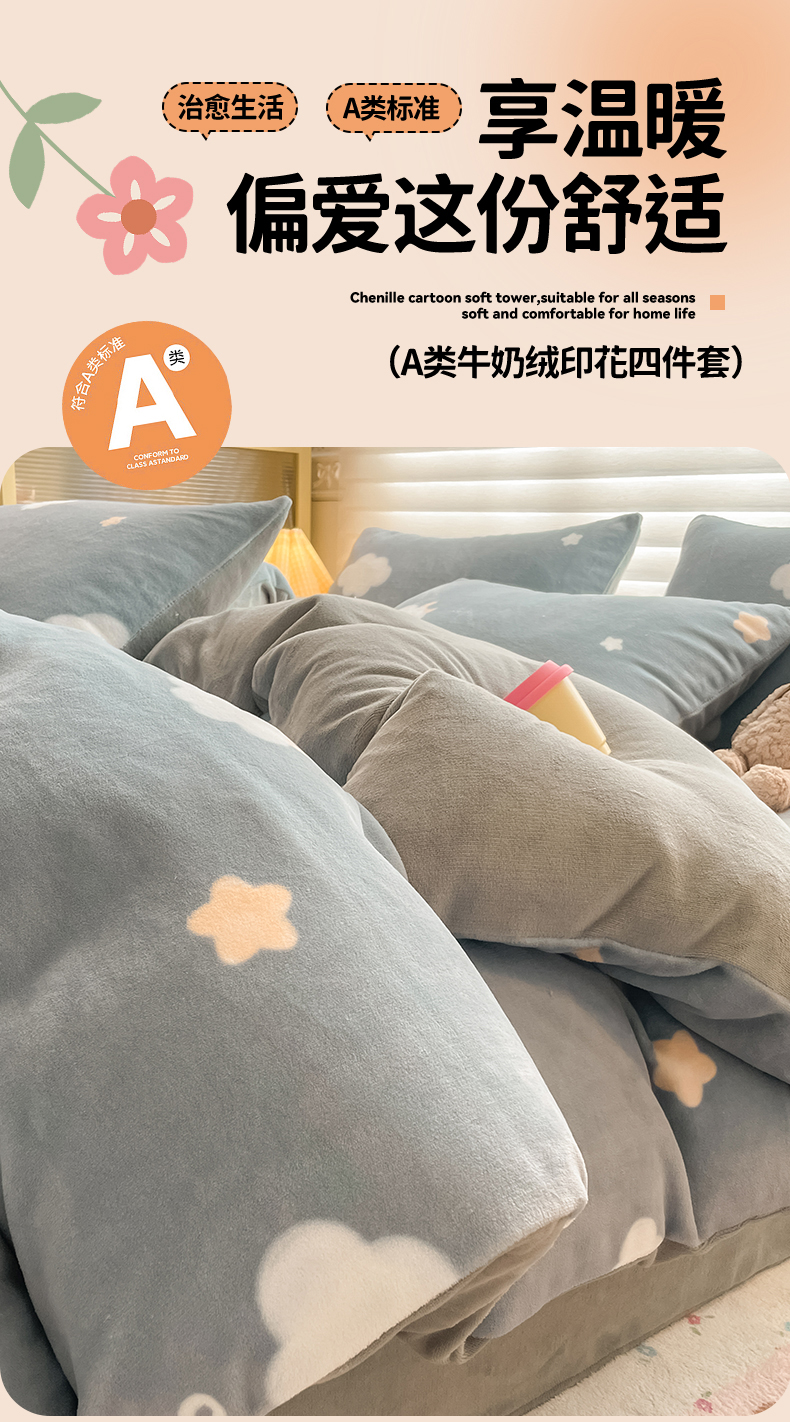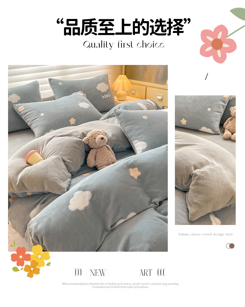 当前位置: 91家纺网 > 商品网购 > 床品套件 > 四件套 > 牛奶绒四件套 > 美澳家纺 2025新款190克加厚牛奶绒印花四件套 云朵