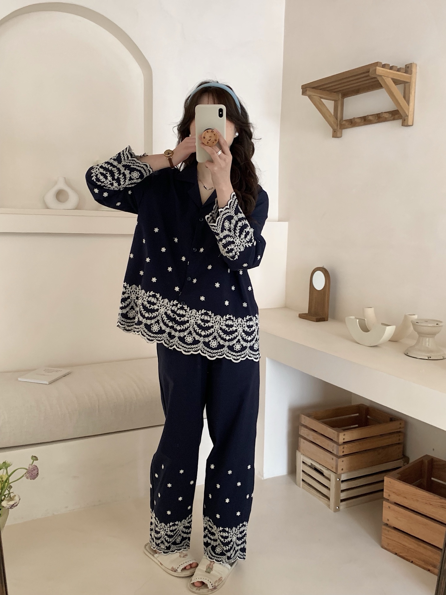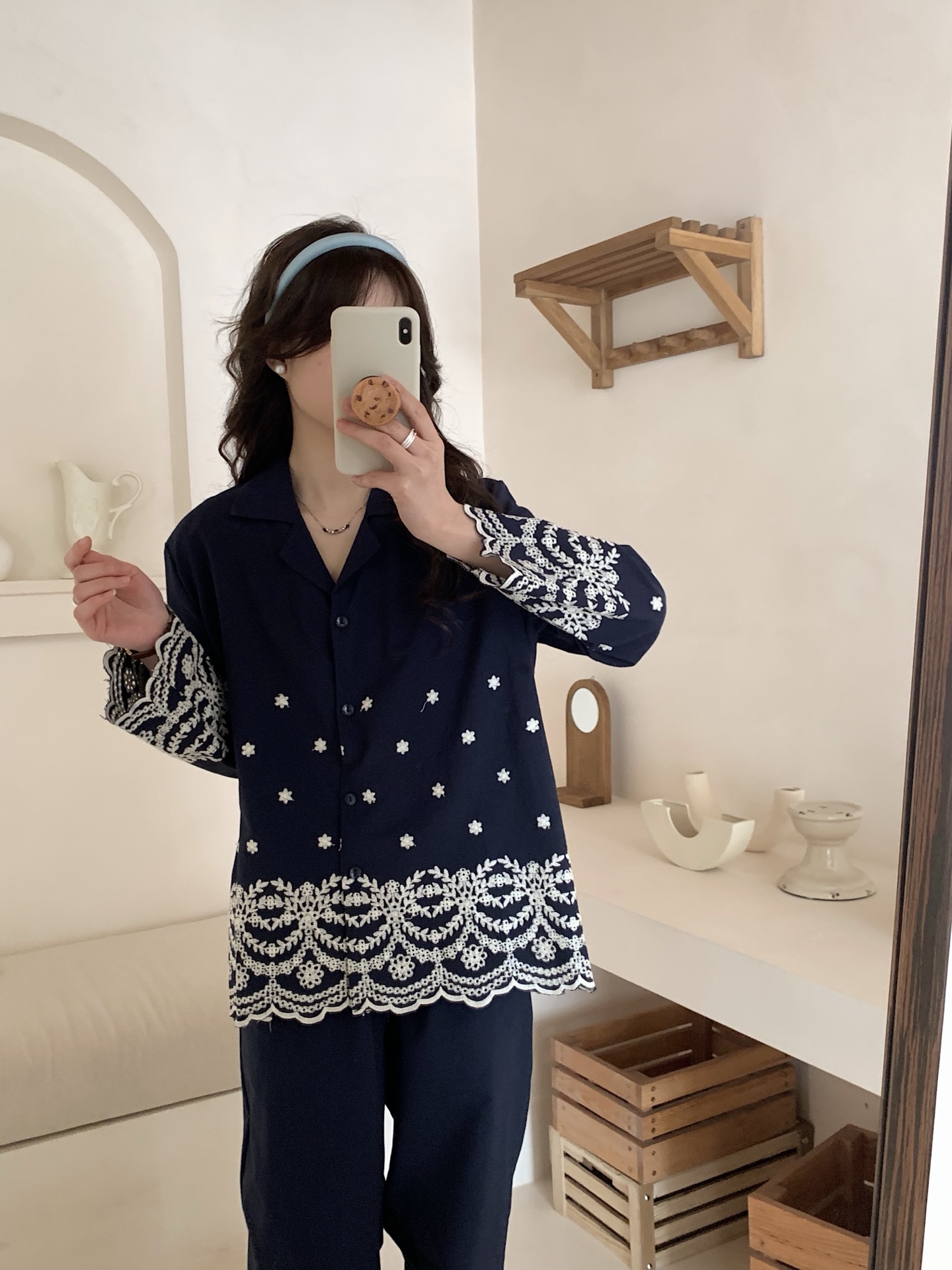 (总)妍景家居生活馆 韩系25057-刺绣衬衫翻领套装