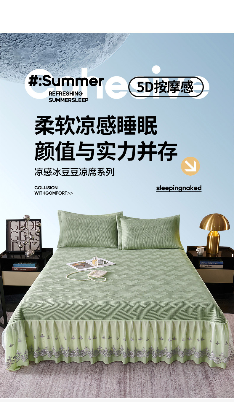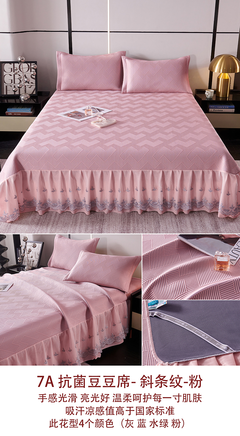 梵克保罗 2025新款7A抗菌母婴级纯乙纶PE刺绣凉感丝豆豆席床单款 肌理纹-香槟
