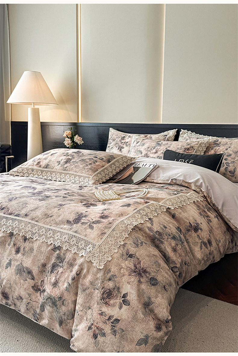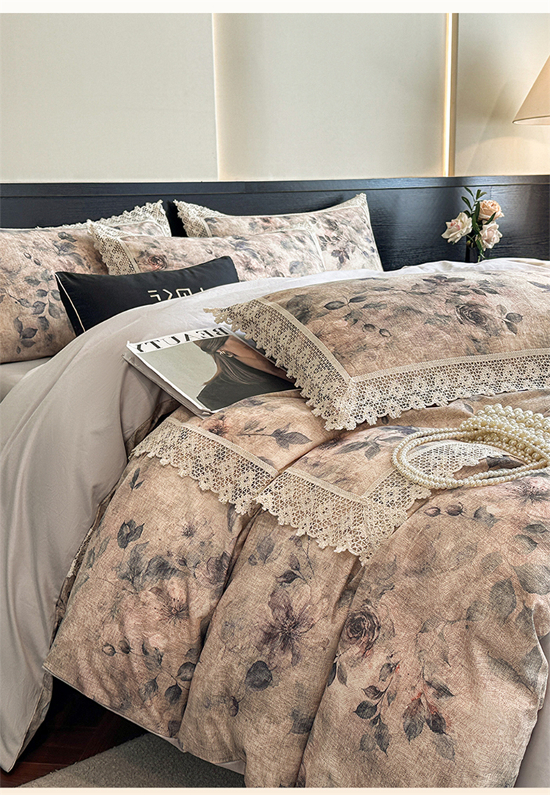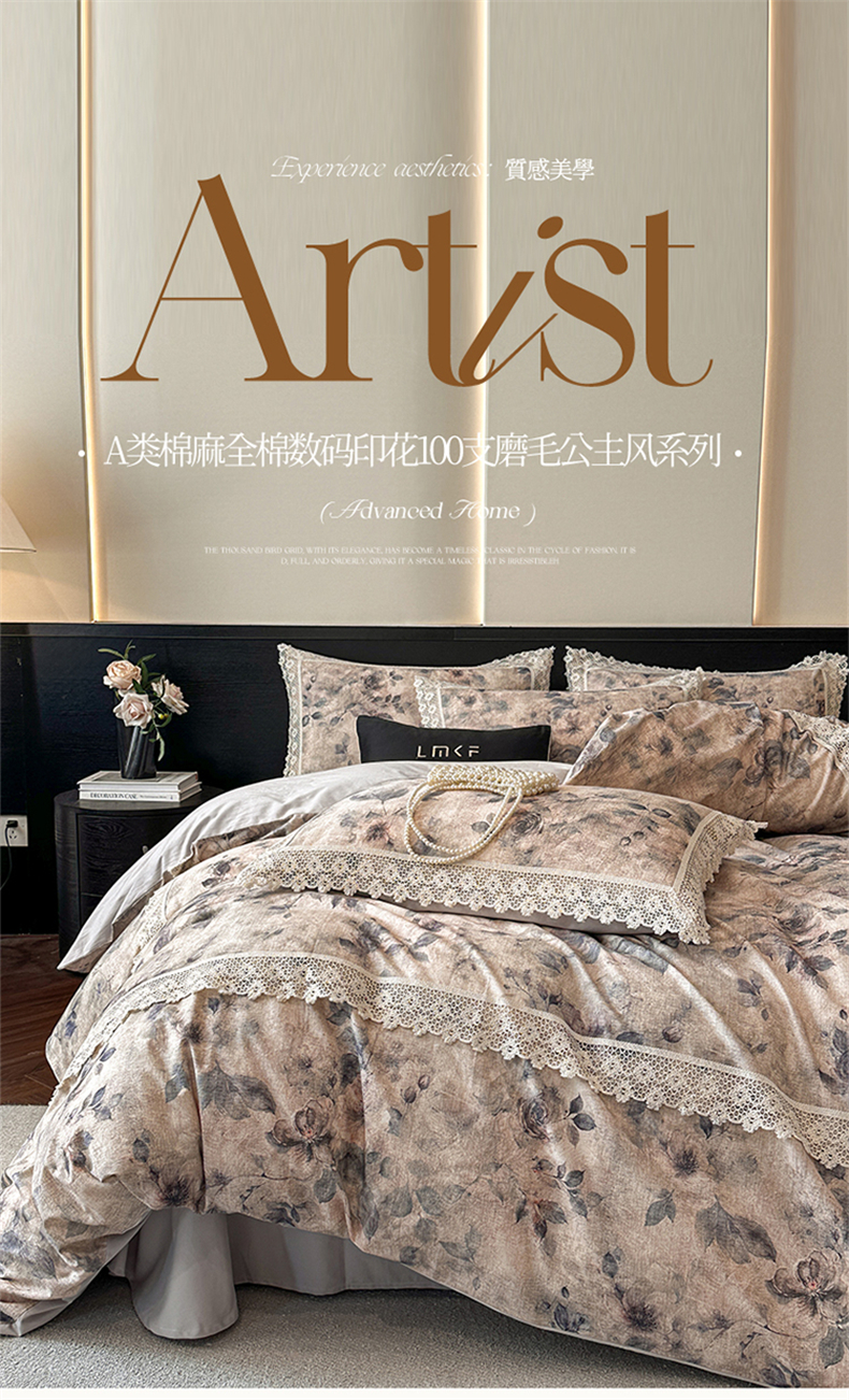 商品名称:蓝米卡夫 2025秋冬-A类棉麻全棉数码印花50S*50S双股磨毛公主风系列(礼盒包装)【如需买家秀联系15996631948】 花间墨韵