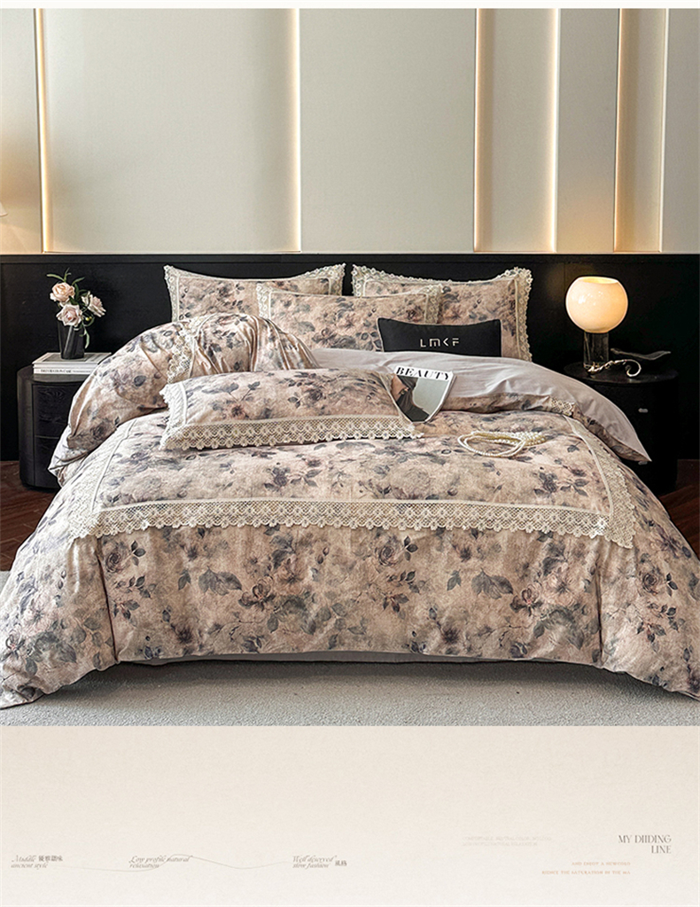 蓝米卡夫 2025秋冬-A类棉麻全棉数码印花50S*50S双股磨毛公主风系列(礼盒包装)【如需买家秀联系15996631948】 花间墨韵