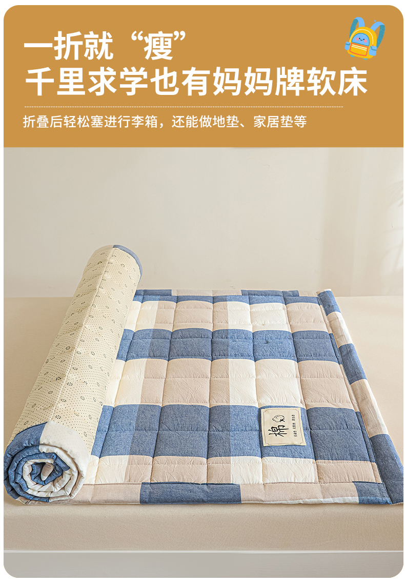 当前位置: 91家纺网 > 商品网购 > 床垫/床褥 > 普通床垫 > 鑫钰 2025新款学生开学季宿舍专用新疆棉花床垫薄款 棉格-蓝大格