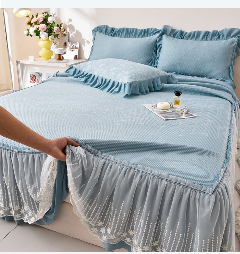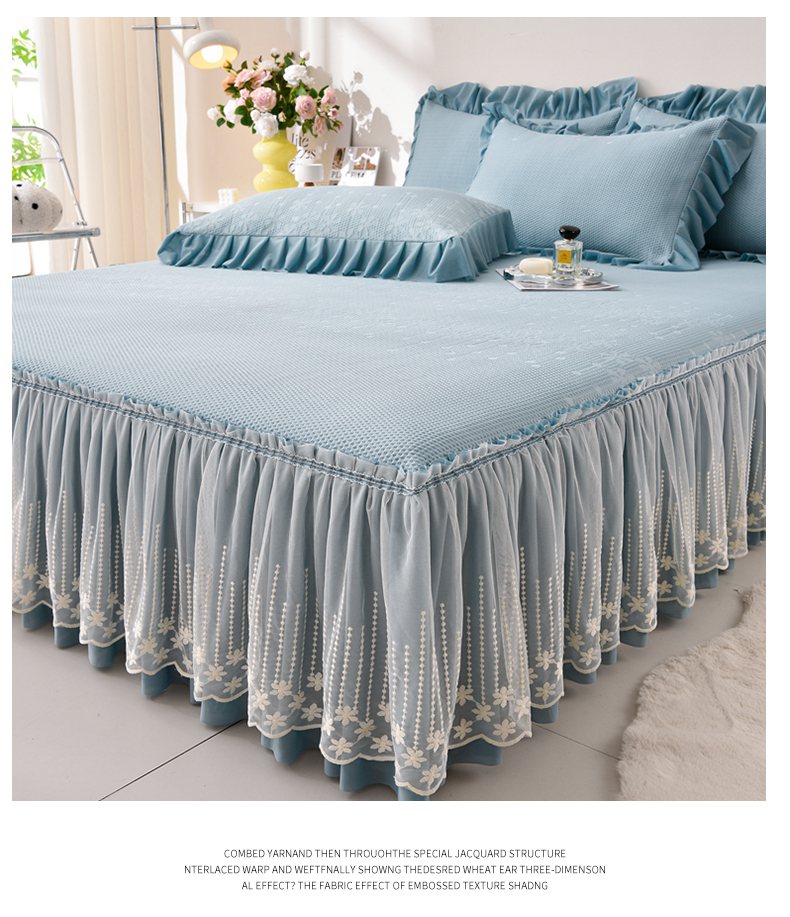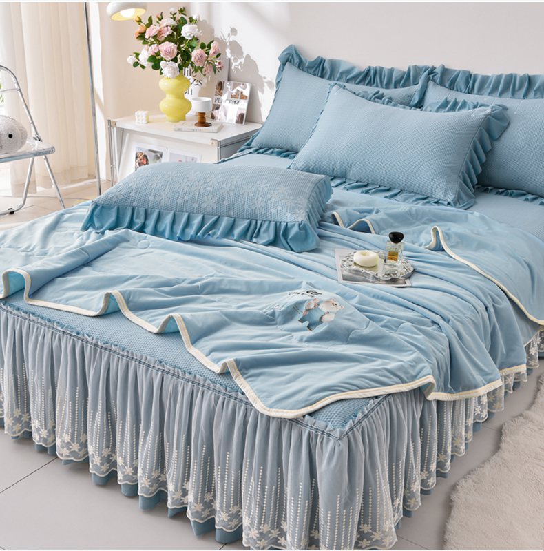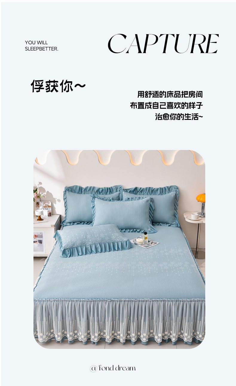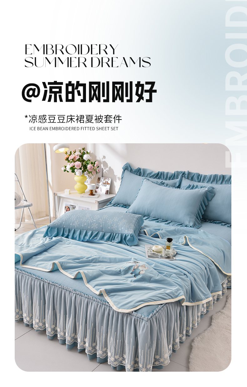 商品名称:梵克保罗 2025新款凉感豆豆床裙夏被四件套 幸运花 宾利兰