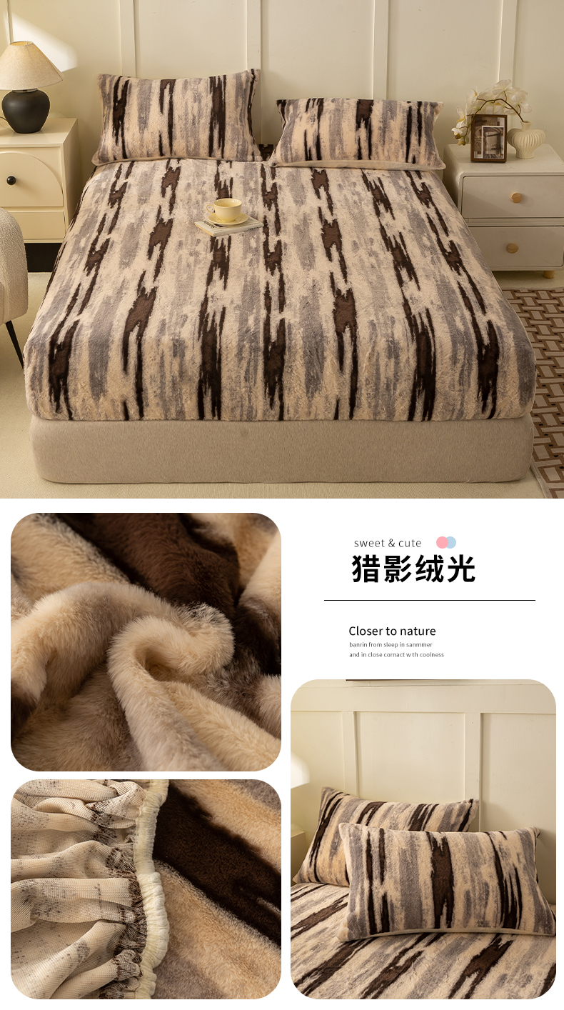 • 91家纺网 家纺一手货源 找家纺 眠势力 2025新款兔毛绒床笠单件冬季加绒冬季保暖保护套全包防尘床垫罩-美拉德系列 巴黎午后-灰【兔毛绒床笠】