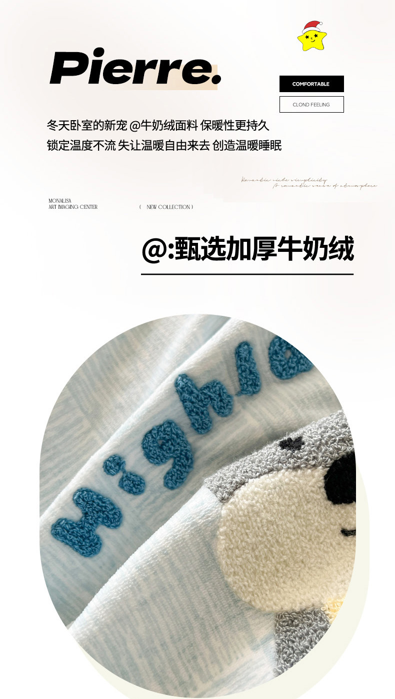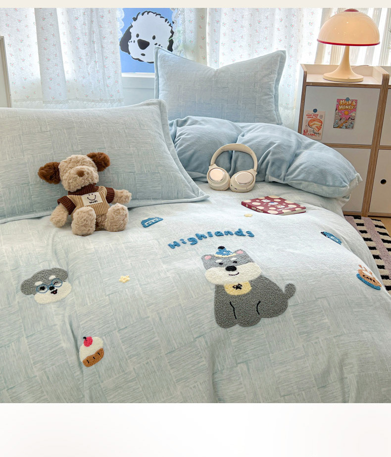 商品名称:倾慕家纺 2026新款卡通毛巾绣加厚保暖牛奶绒单被套 咖啡小狗
