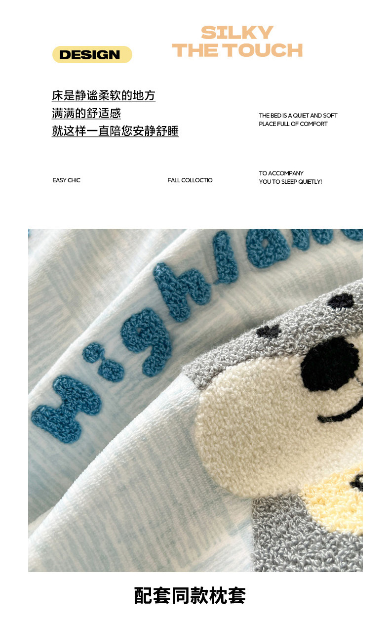(总)倾慕家纺 2026新款全棉卡通毛巾绣系列单被套,彩虹马,格子小狗,欢乐企鹅,森林小熊,兔兔熊,小树恐龙,小兔女孩