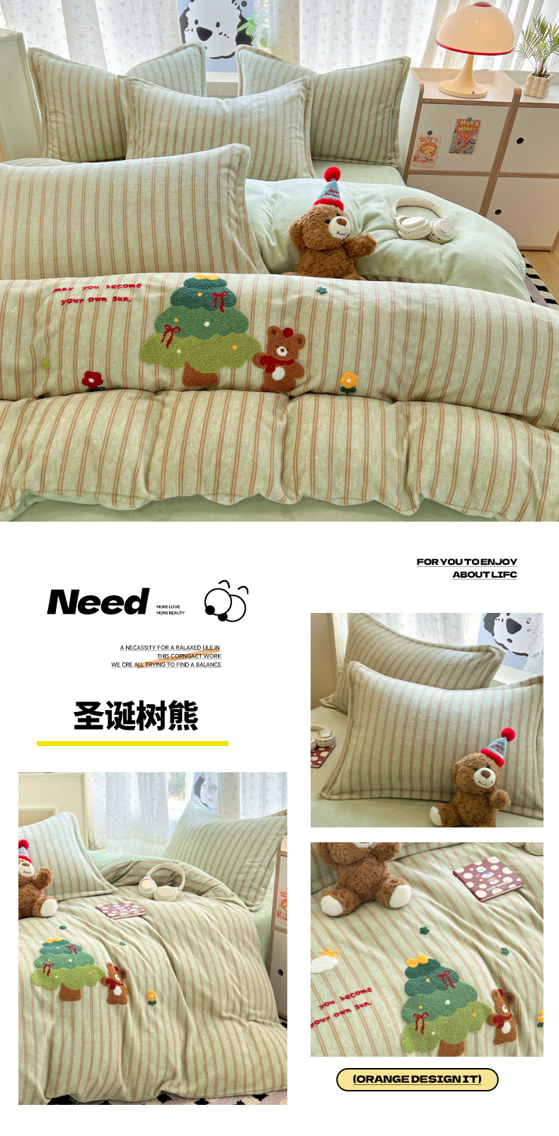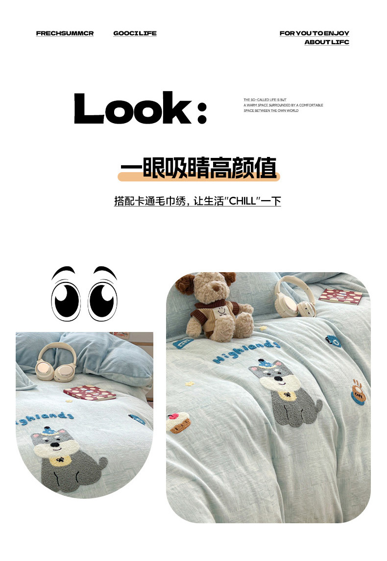 (总)倾慕家纺 2026新款全棉卡通毛巾绣系列四件套,彩虹马,格子小狗,欢乐企鹅,森林小熊,兔兔熊,小树恐龙,小兔女孩