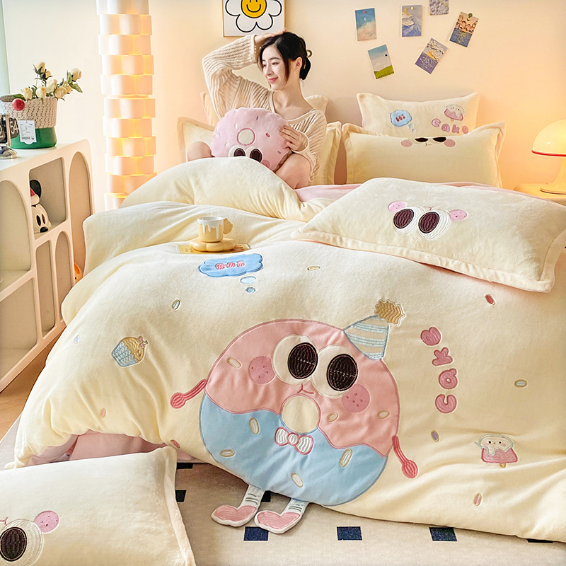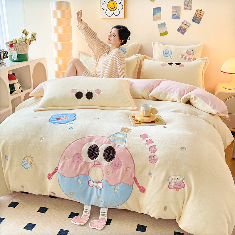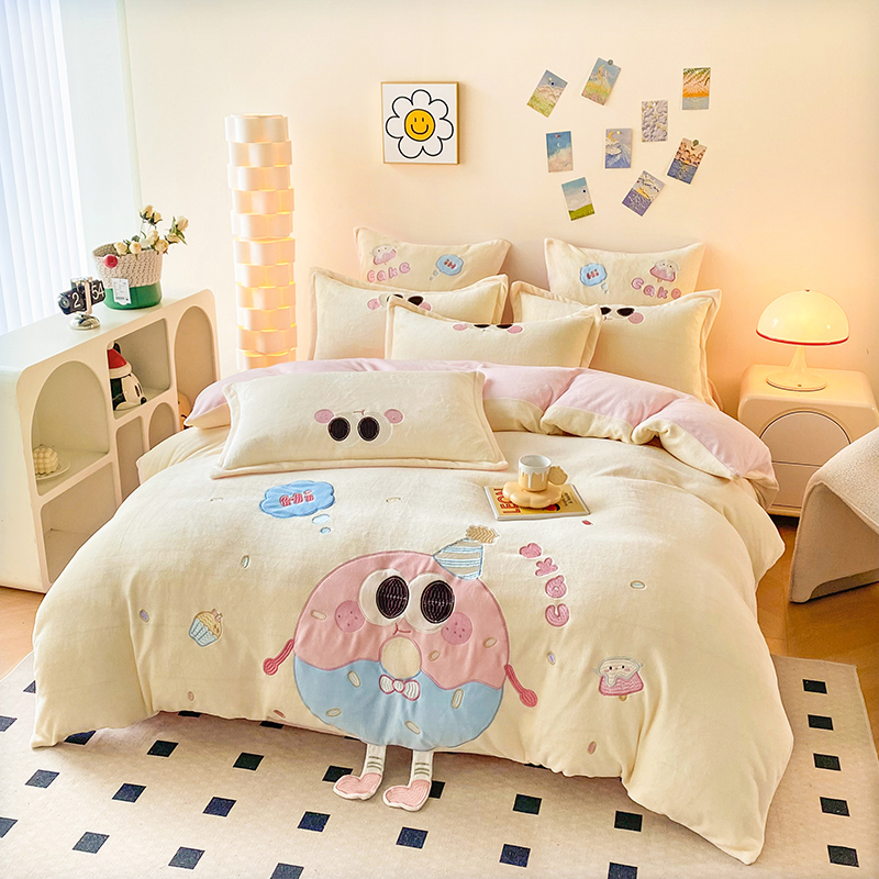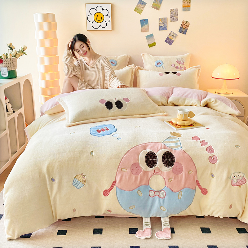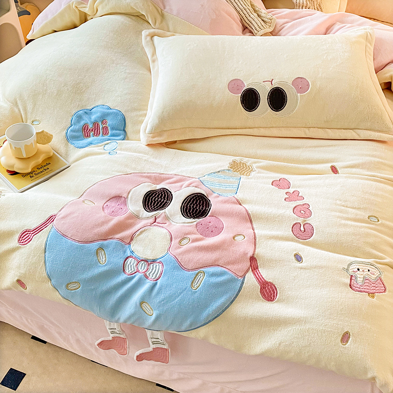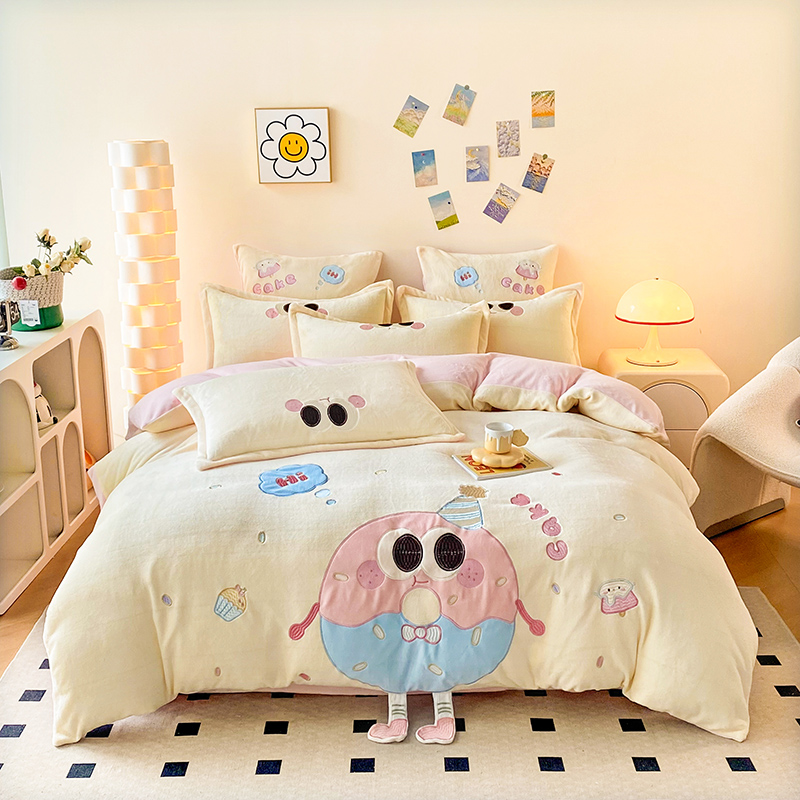 漫布云2025秋冬新品大版卡通230g牛奶绒兔毛贴布绣婴儿绒四件套--甜甜圈系列 甜甜圈--嫩黄