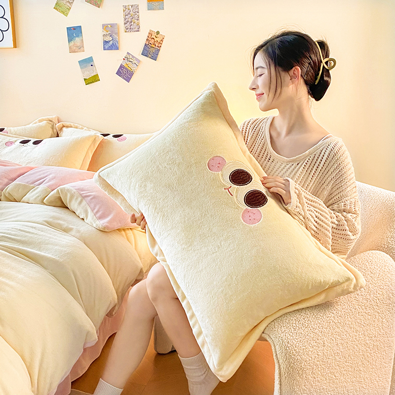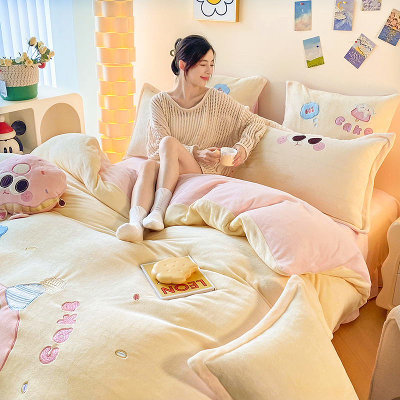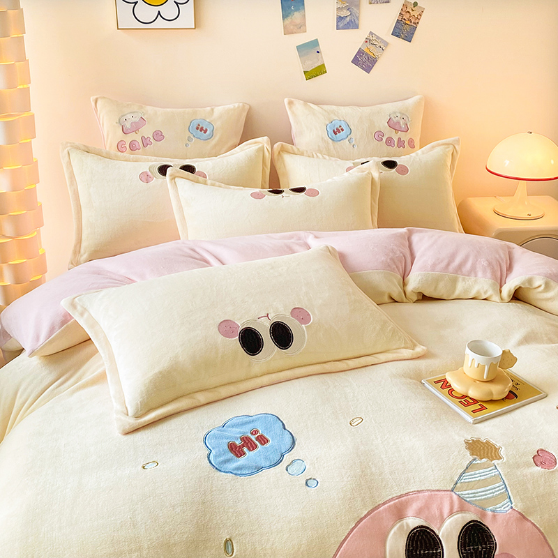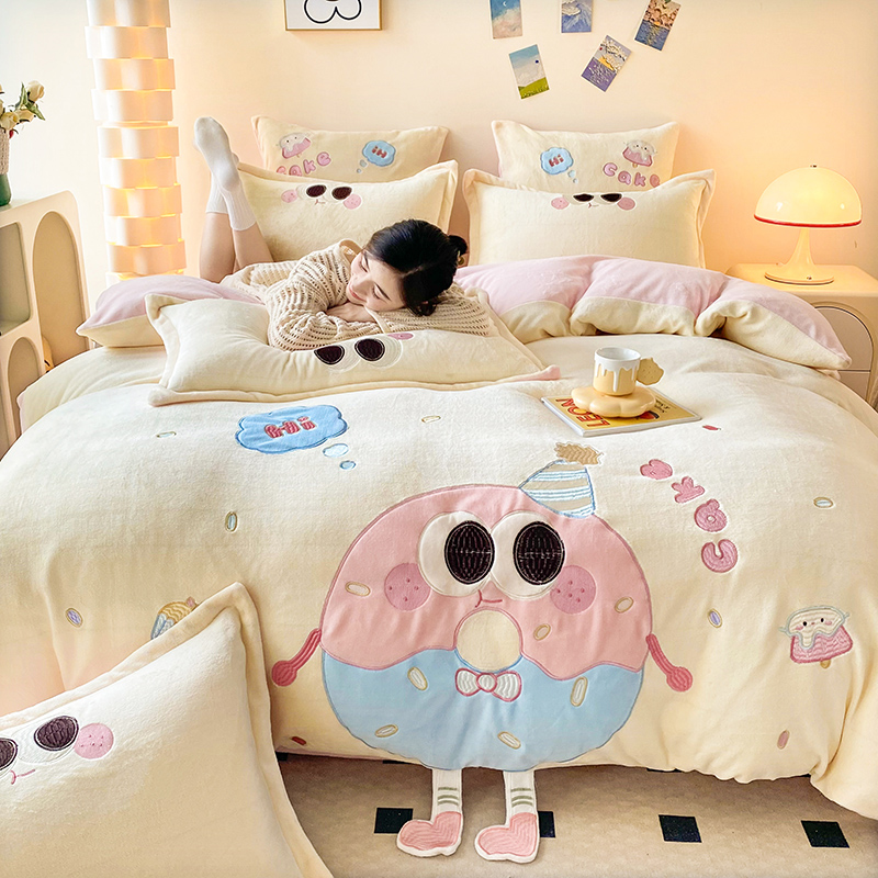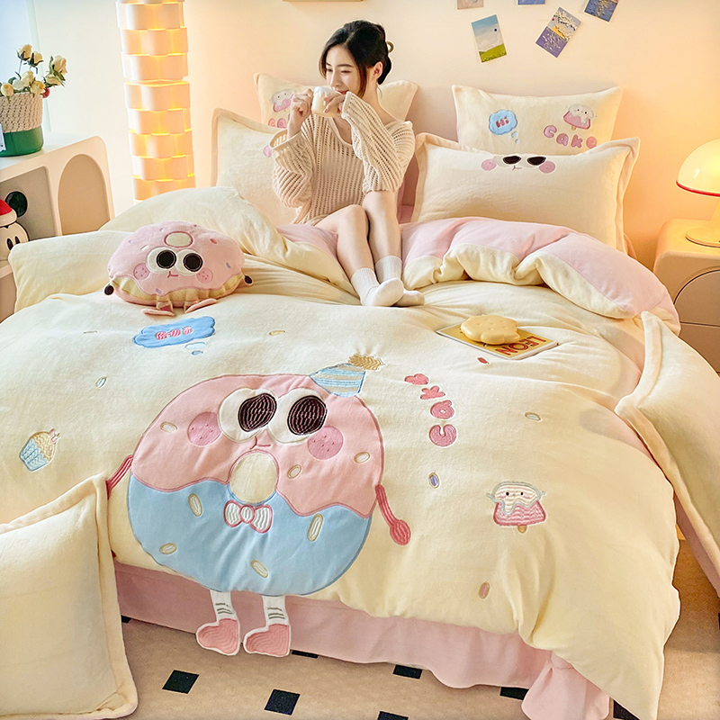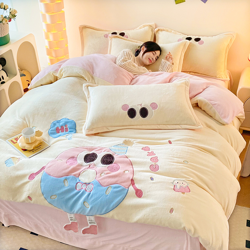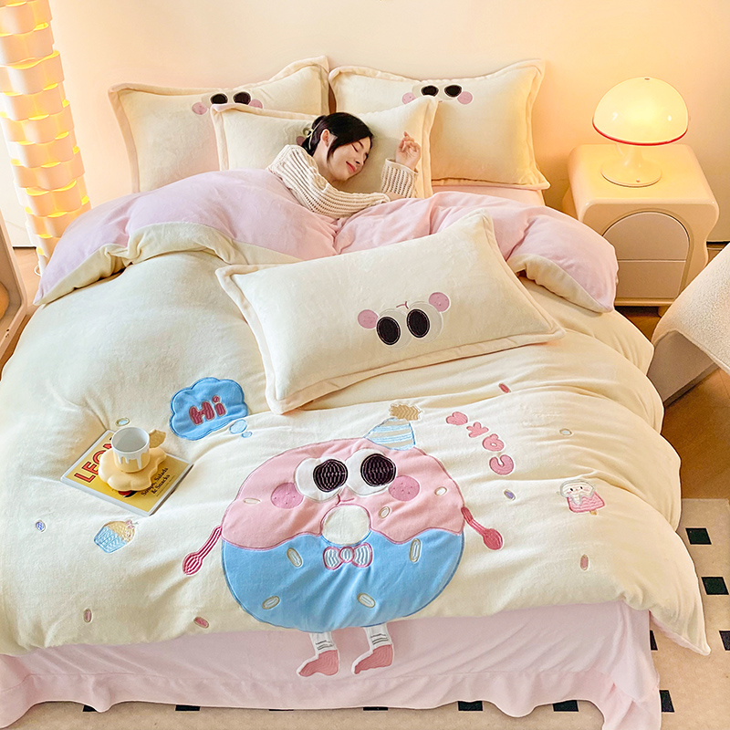 漫布云2025秋冬新品大版卡通230g牛奶绒兔毛贴布绣婴儿绒四件套--甜甜圈系列 甜甜圈--嫩黄