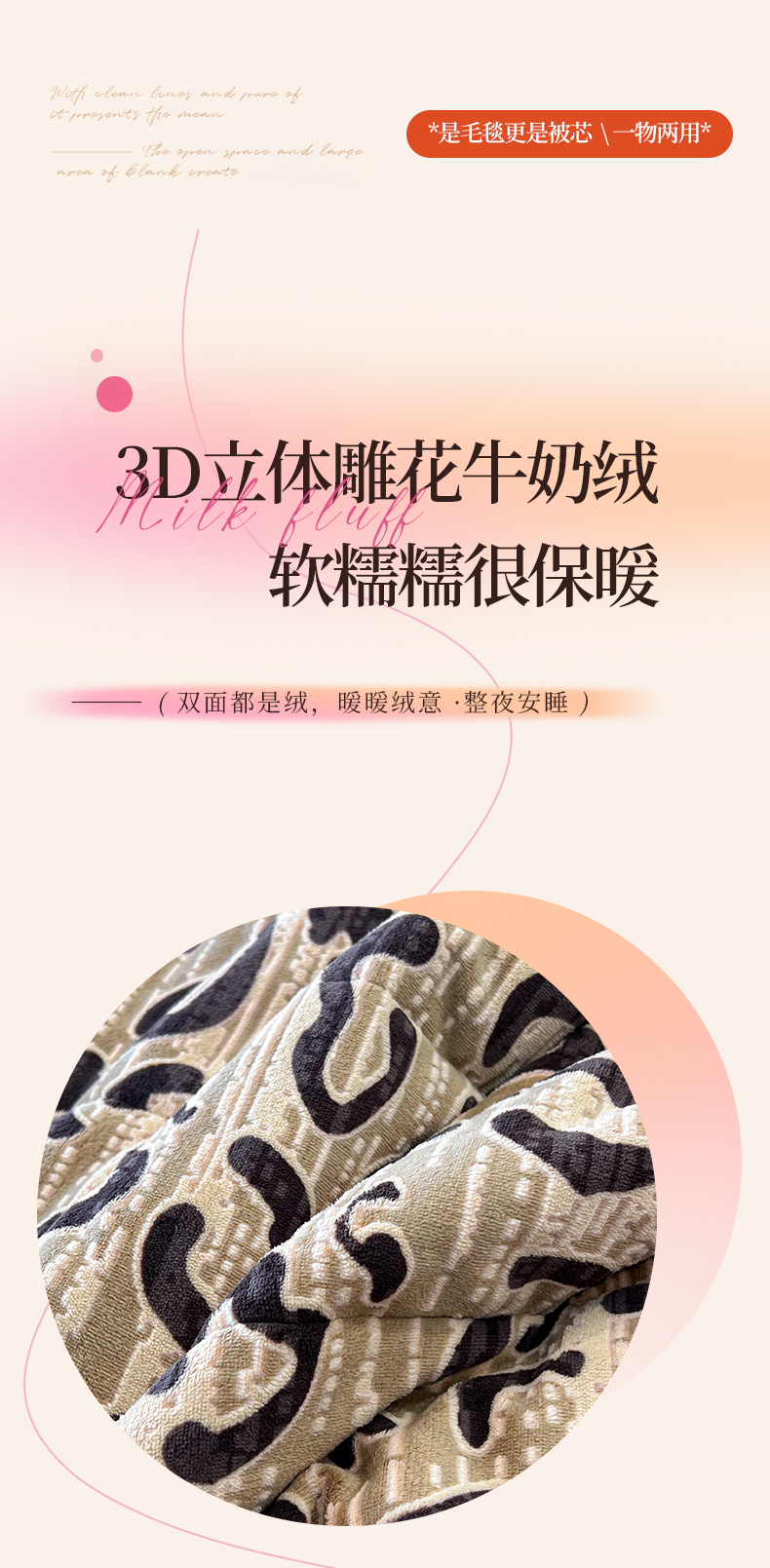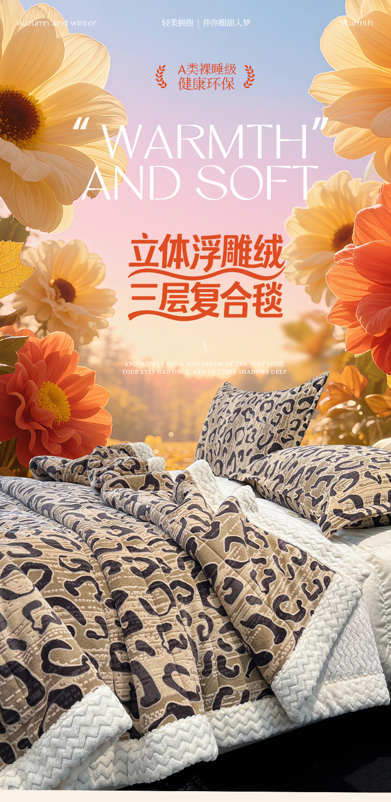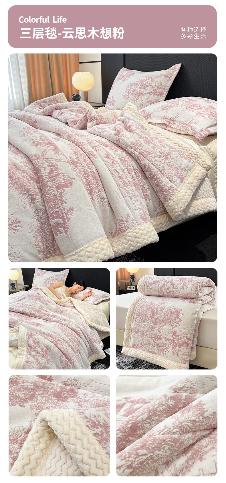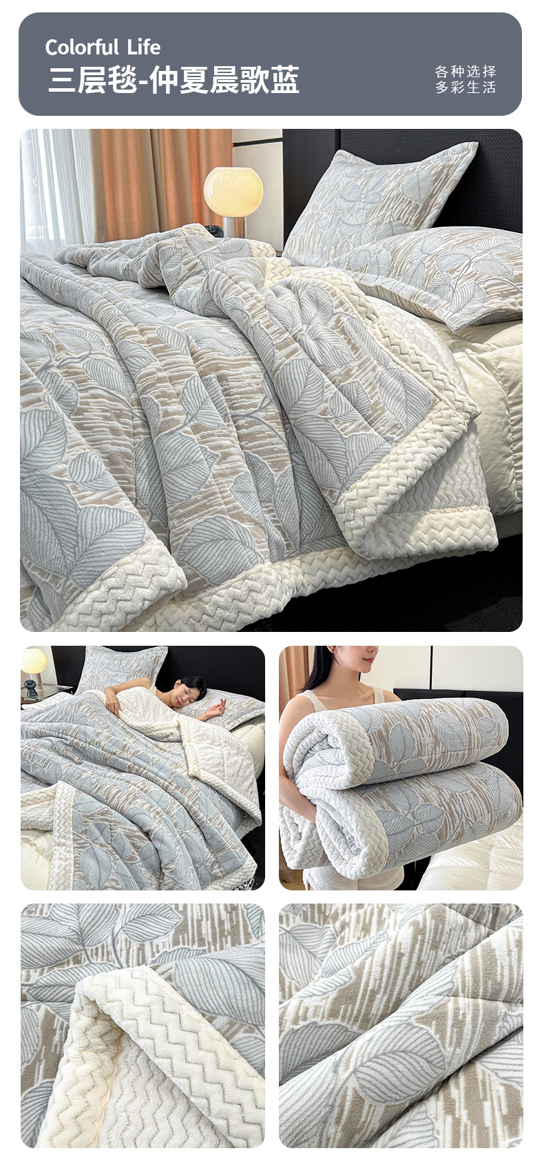 倾慕家纺 2026新款雕花绒贝贝绒三层复合保暖毯 三层毯维密咖