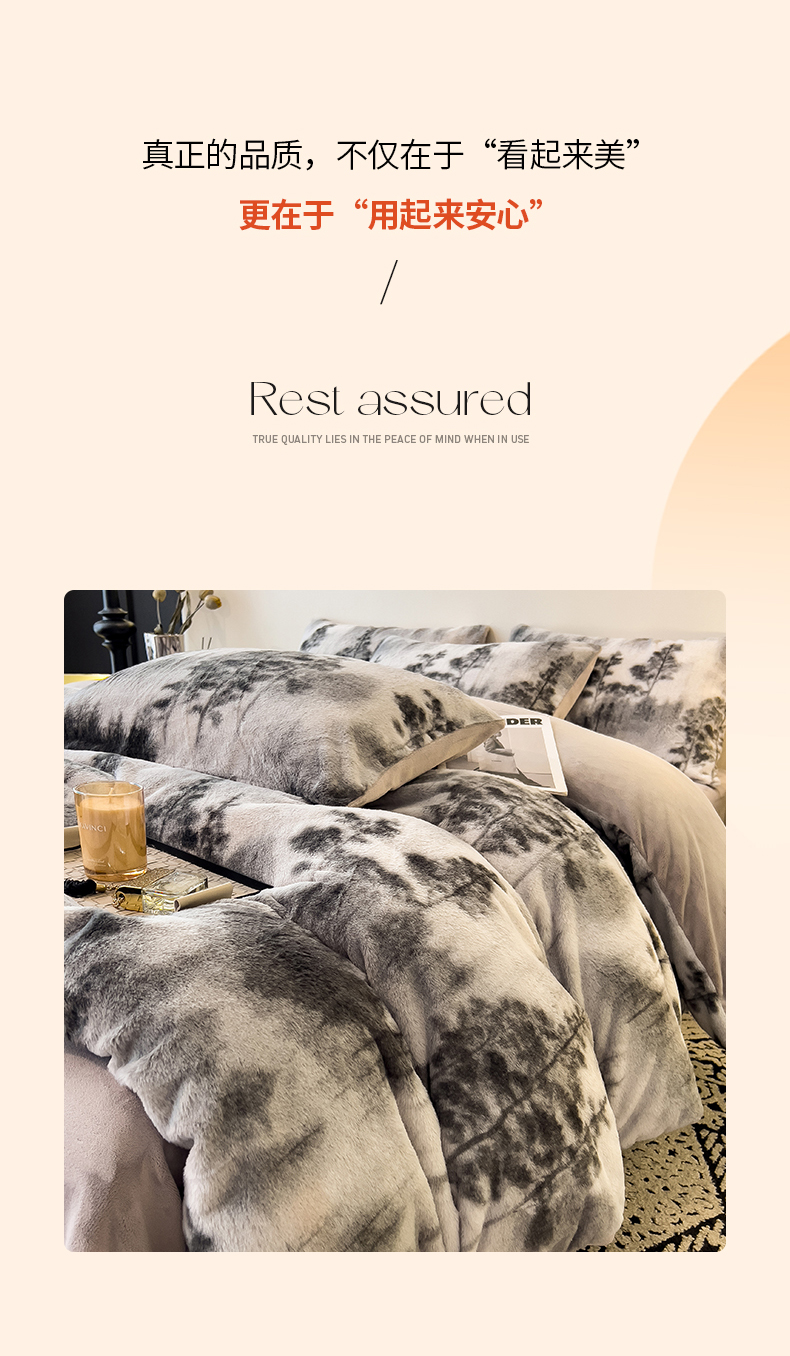 • 91家纺网 家纺一手货源 找家纺 倾慕家纺 2026新款高克重兔毛绒保暖单被套 疏影灰