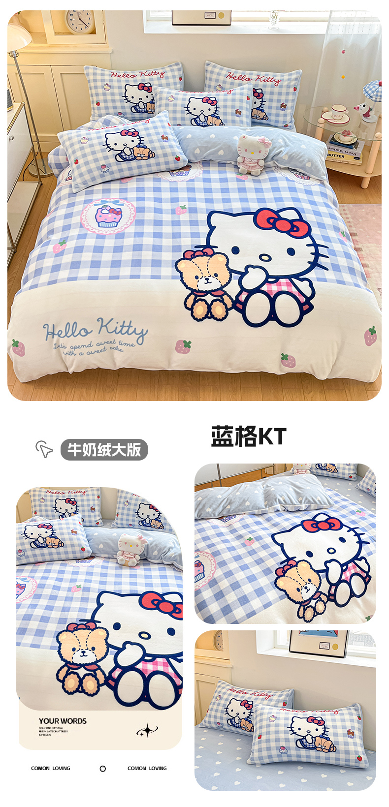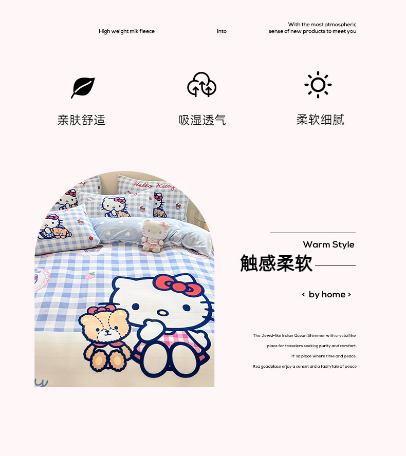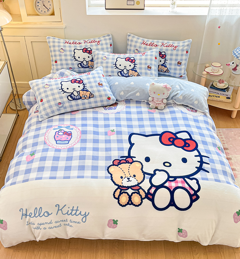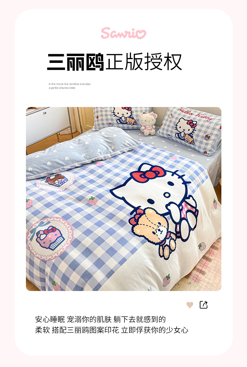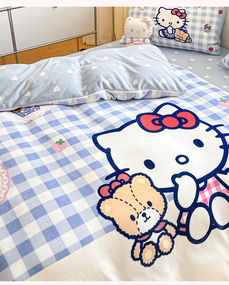 当前位置: 91家纺网 > 商品网购 > 床品套件 > 四件套 > 牛奶绒四件套 > 博雅 2025新款三丽鸥正版授权高克重大版牛奶绒四件套 牛奶绒大版-蓝格KT