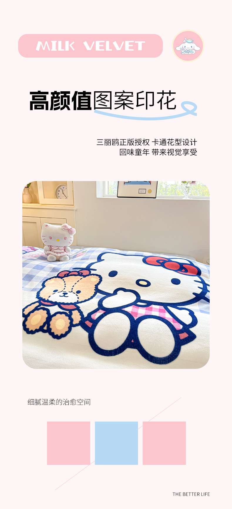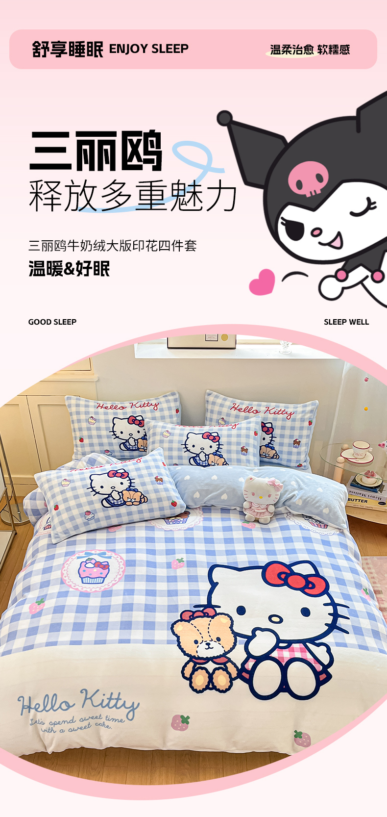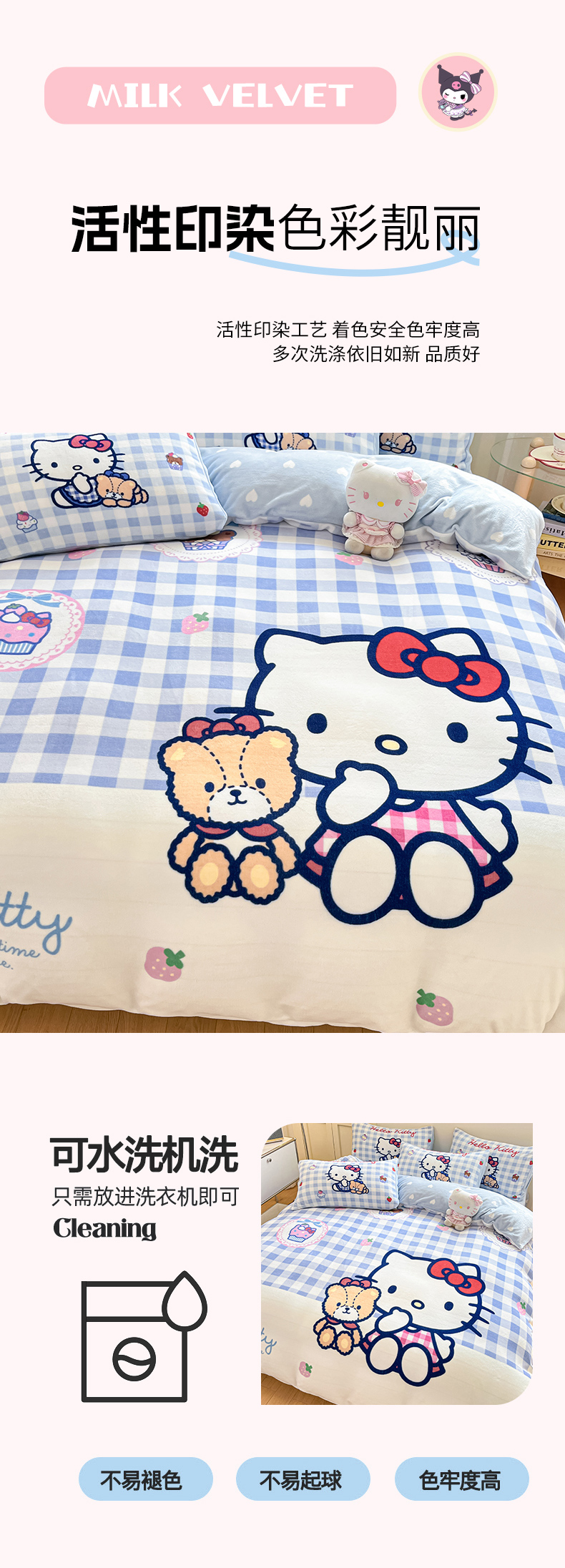 当前位置: 91家纺网 > 商品网购 > 床品套件 > 四件套 > 牛奶绒四件套 > 博雅 2025新款三丽鸥正版授权高克重大版牛奶绒四件套 牛奶绒大版-蓝格KT