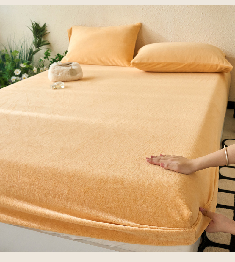 兰紫橙家纺 2025新款简约纯色牛奶绒床笠系列 雏菊黄