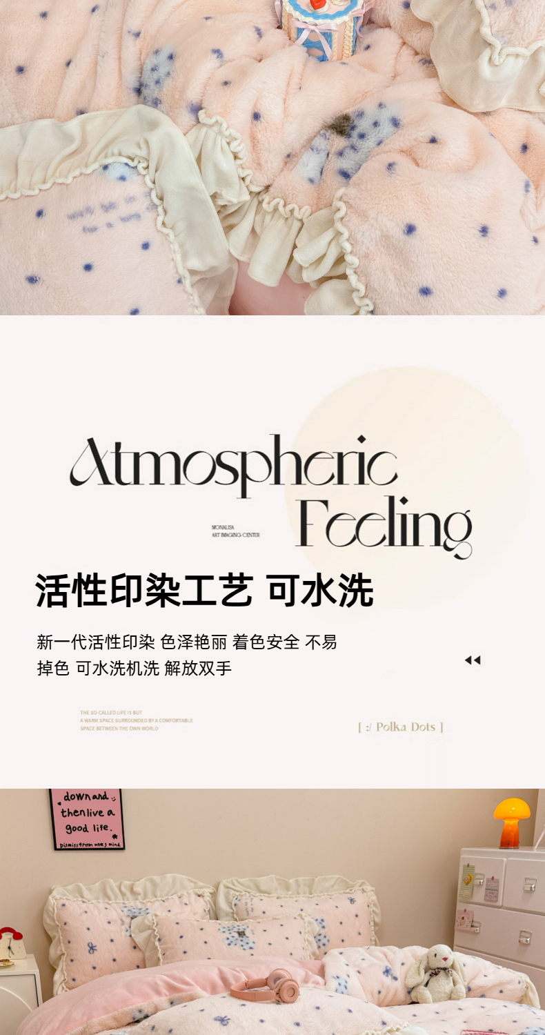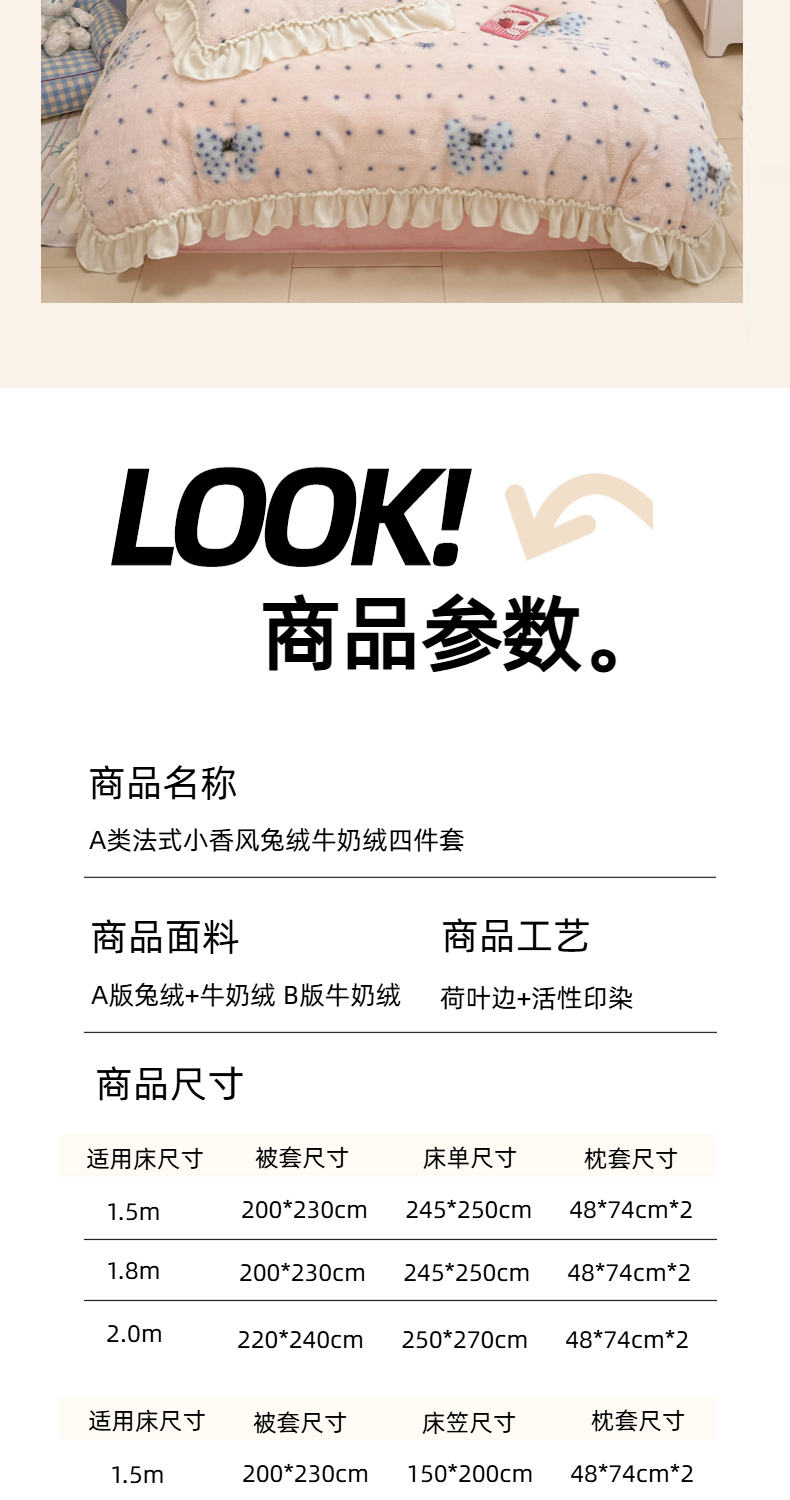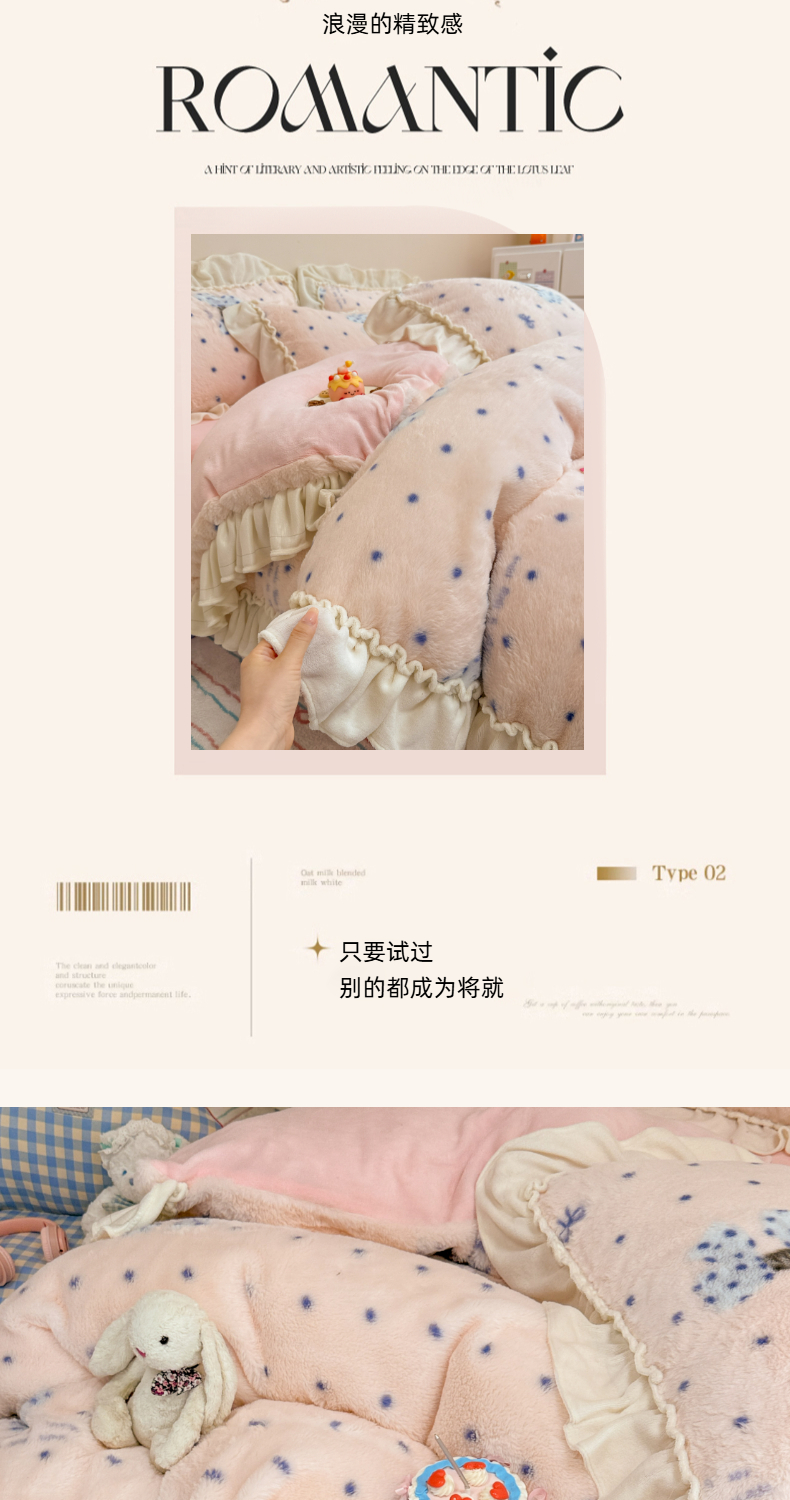 (总)米莱家纺 2025新款兔毛绒花边牛奶绒四件套,彩色圆点,繁花,粉黛,蝴蝶结,咖圆点,可爱兔,可爱熊,蔷薇
