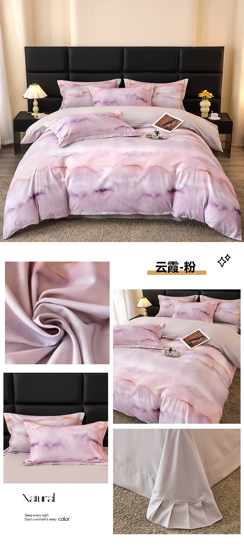馨雅家纺 2025新款全棉磨毛数码印花四件套 云霞-粉