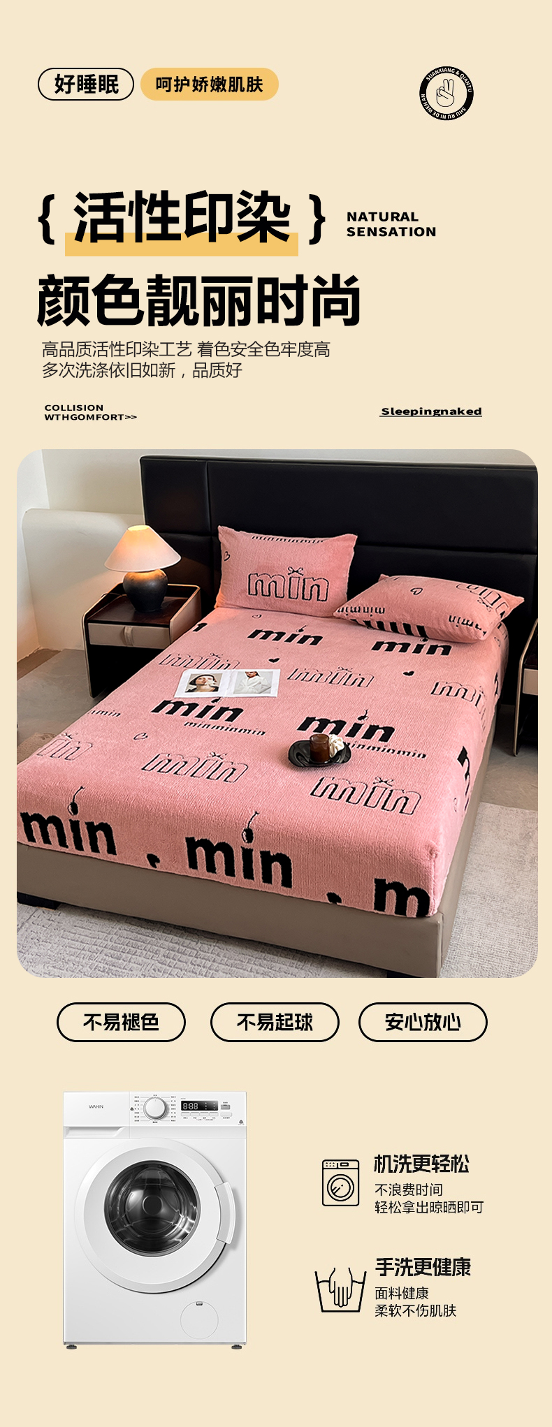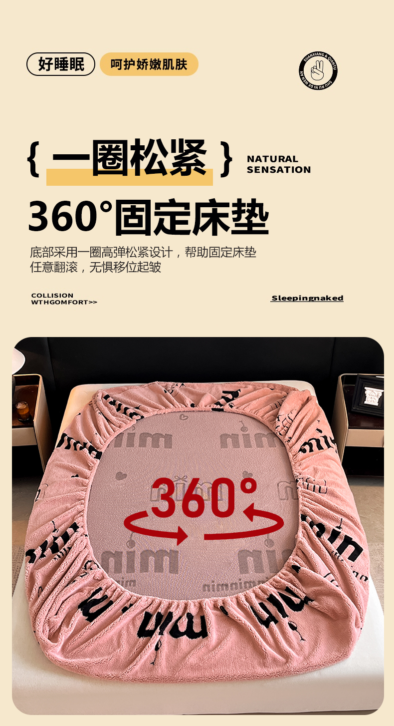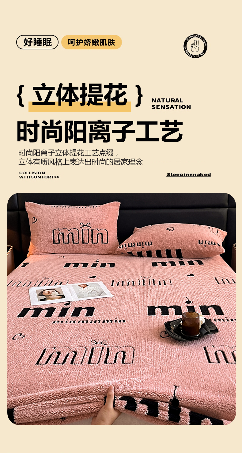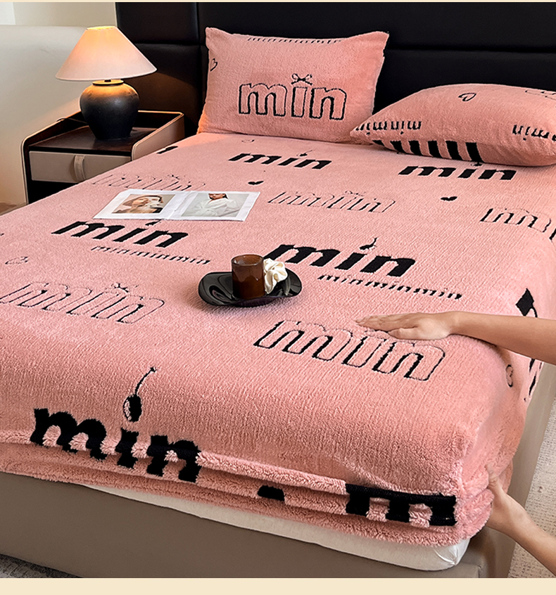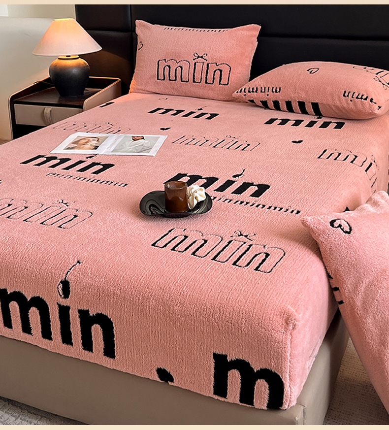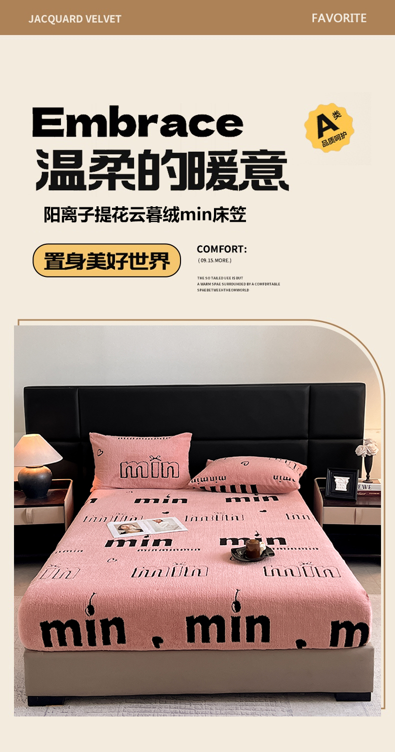 • 91家纺网 家纺一手货源 找家纺 慕木家纺 2025新款A类高克重云慕绒床笠系列(场景二拍摄)提供买家秀 云暮绒床笠-桃夭粉