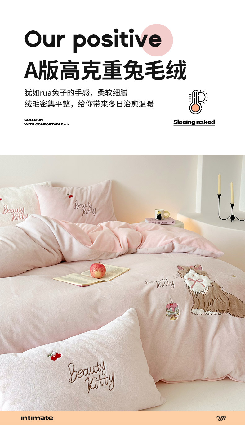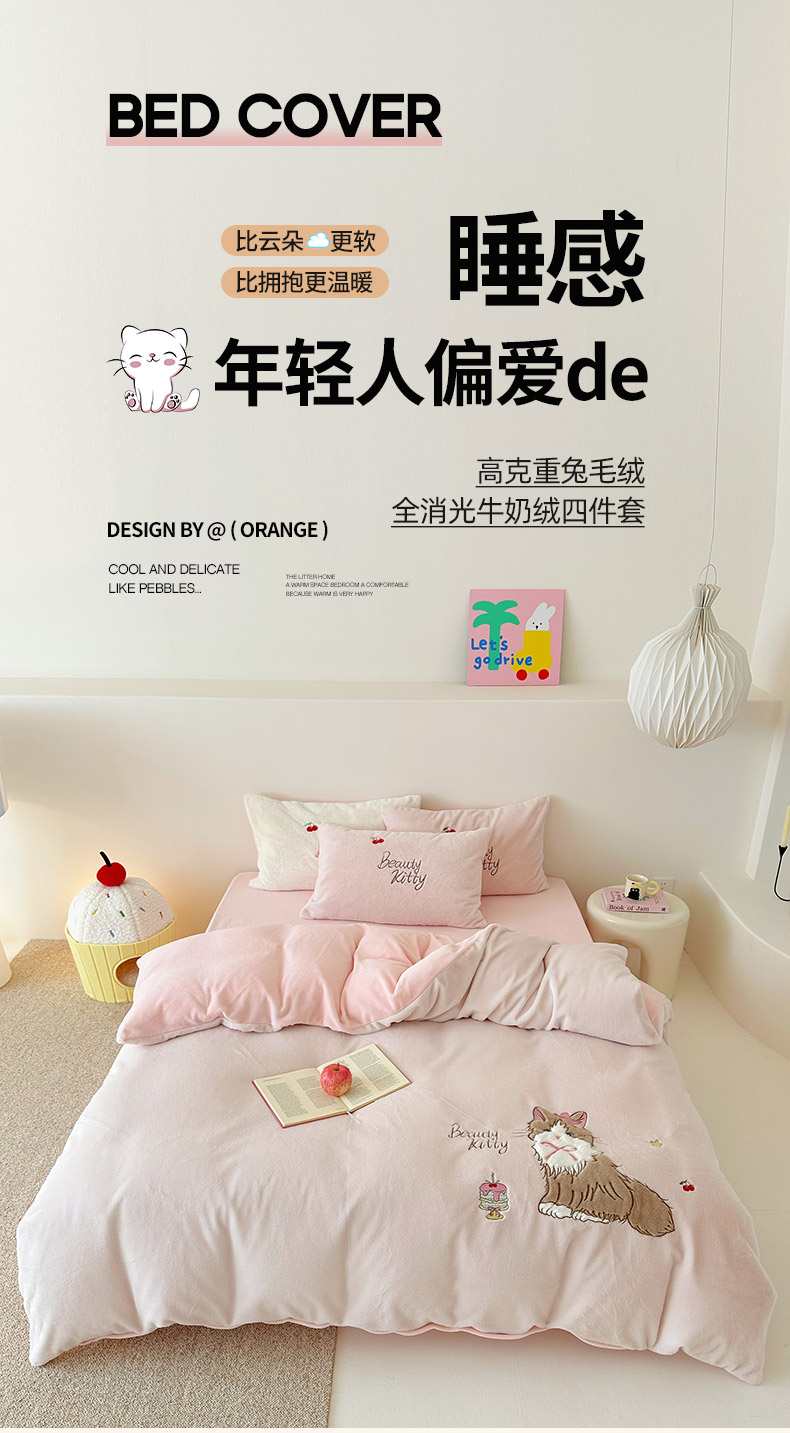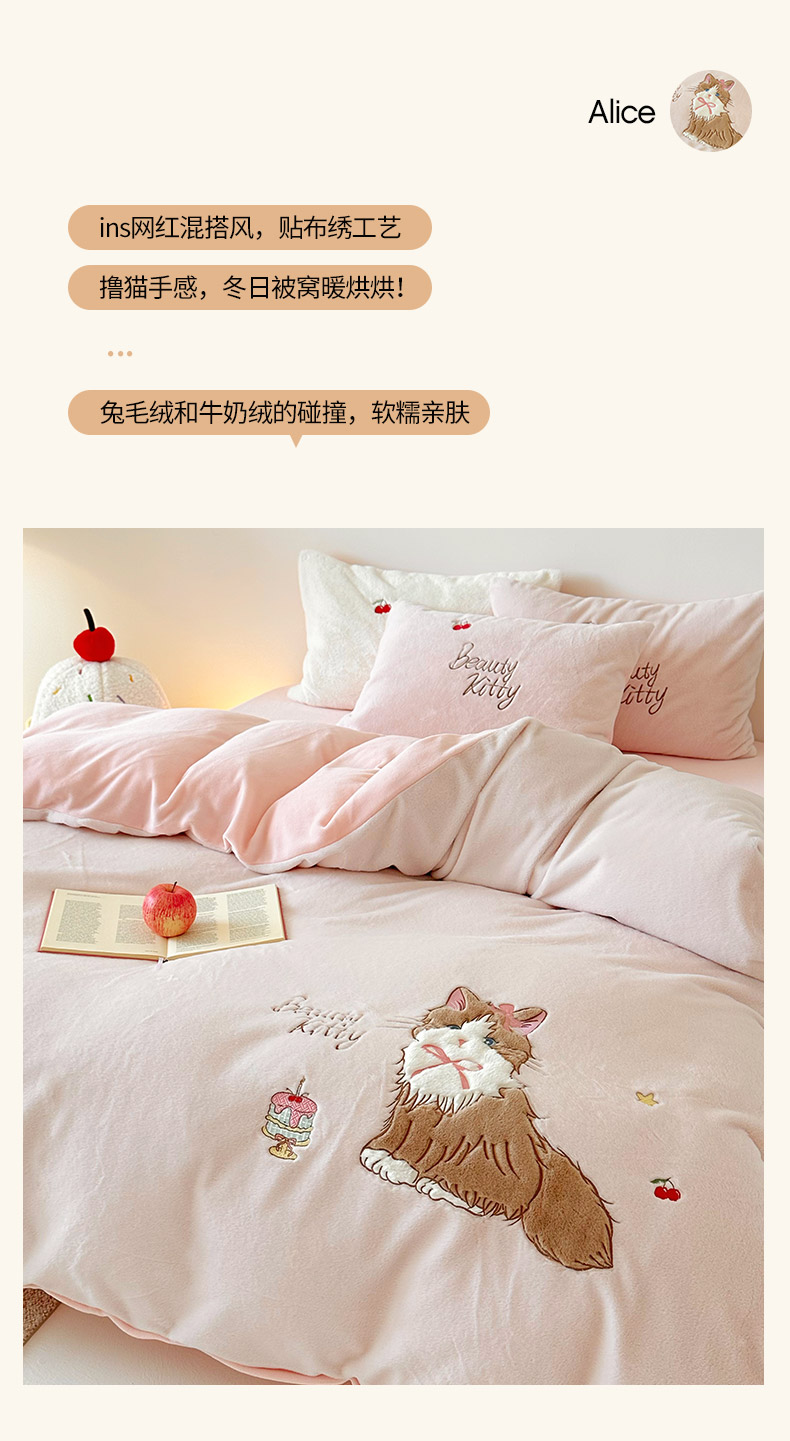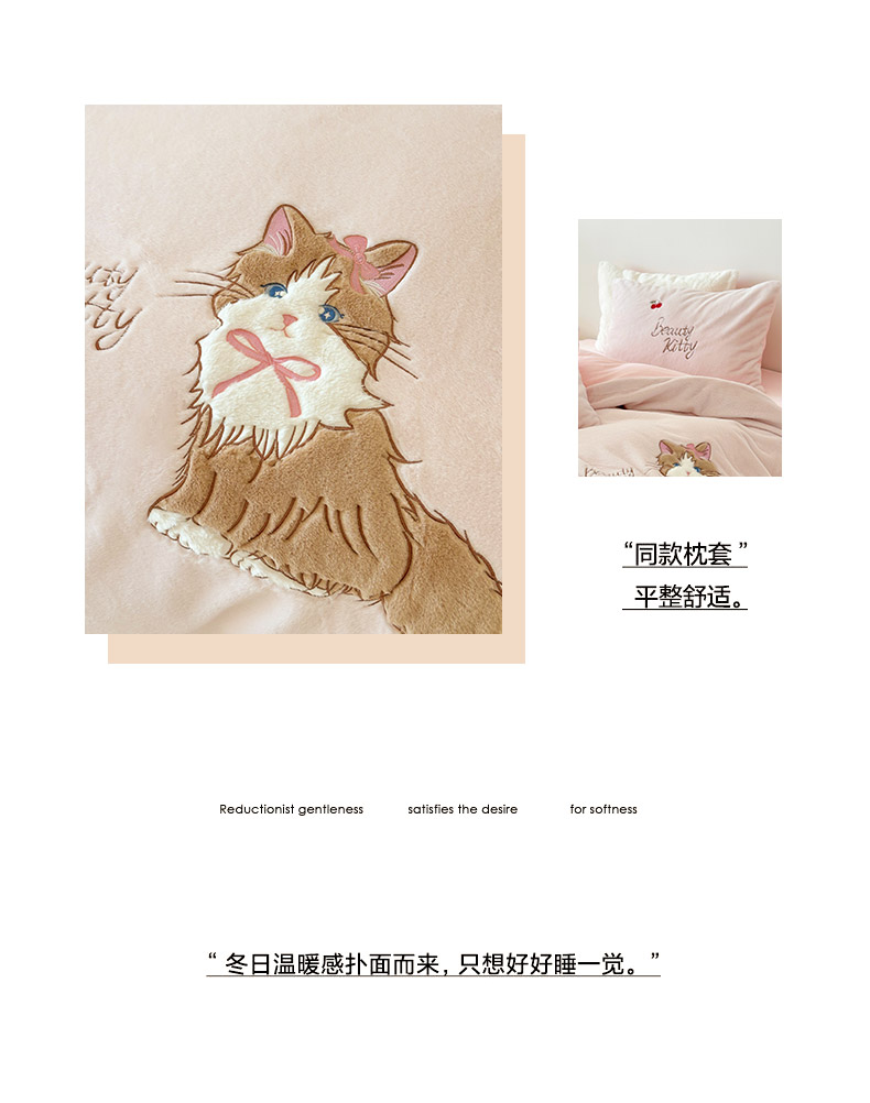 当前位置: 91家纺网 > 商品网购 > 床品套件 > 四件套 > 兔毛绒四件套 > 乐坊 2025新款300g高克重兔绒卡通贴布绣牛奶绒四件套冬季加厚保暖 萌宠猫咪粉