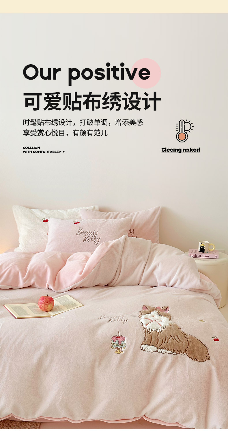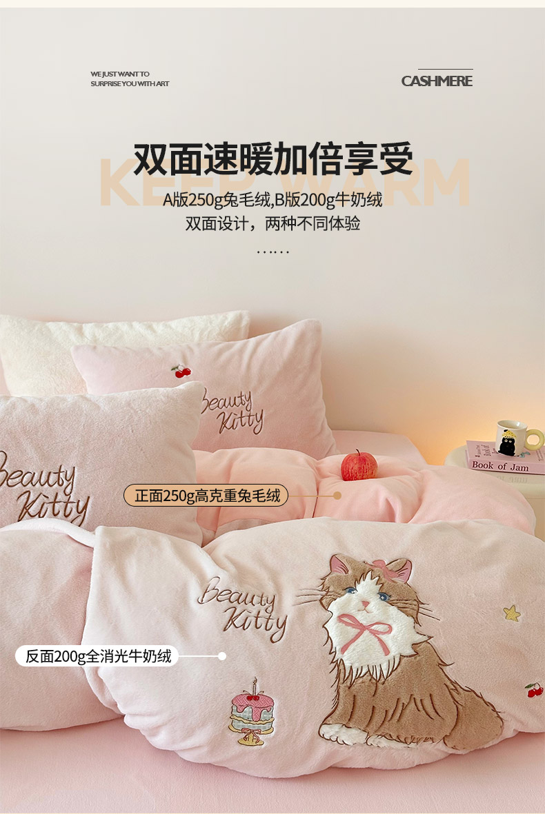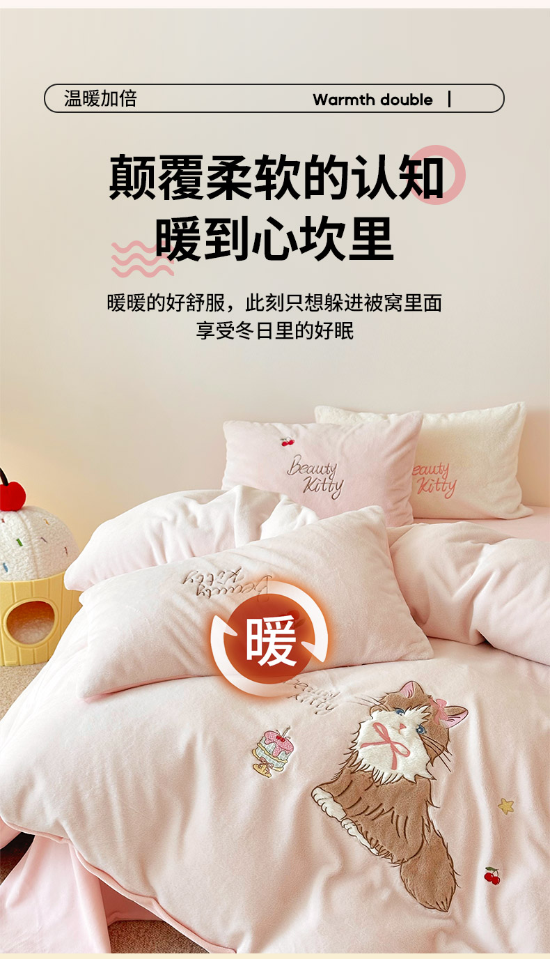当前位置: 91家纺网 > 商品网购 > 床品套件 > 四件套 > 兔毛绒四件套 > 乐坊 2025新款300g高克重兔绒卡通贴布绣牛奶绒四件套冬季加厚保暖 萌宠猫咪粉