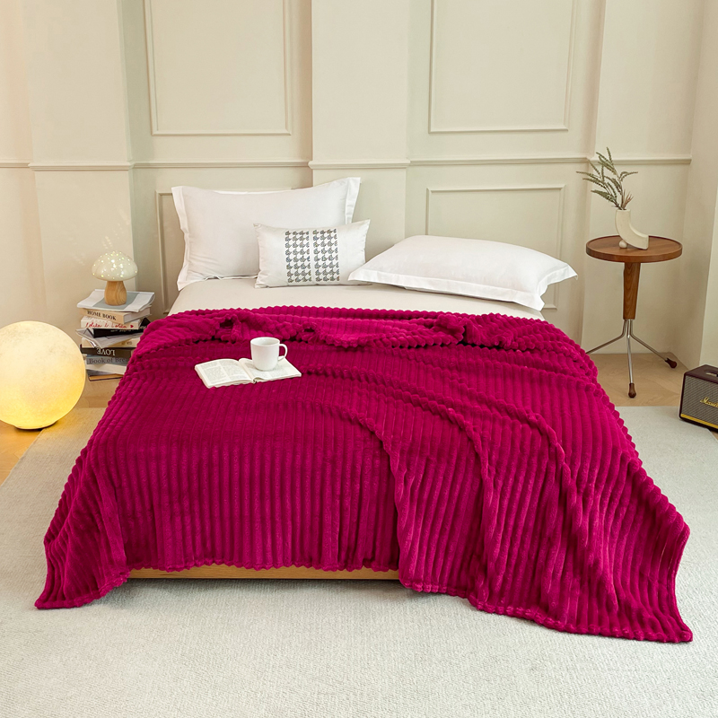 乐窝家纺仓储 2025新款跨境外贸直播热品兔毛绒高克重多功能抽条毛毯盖毯午睡毯 咖色