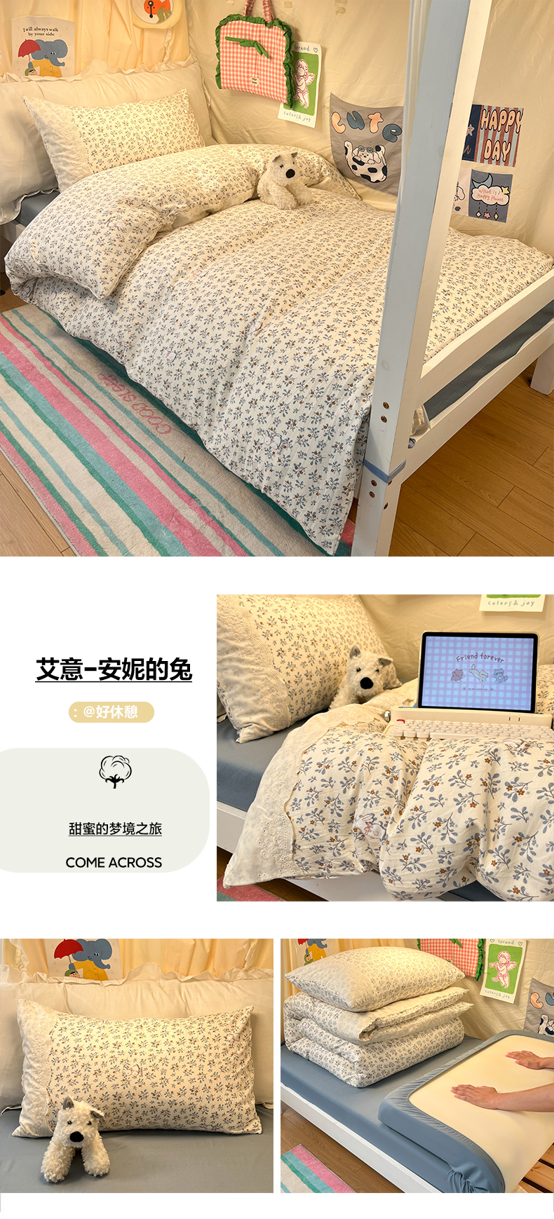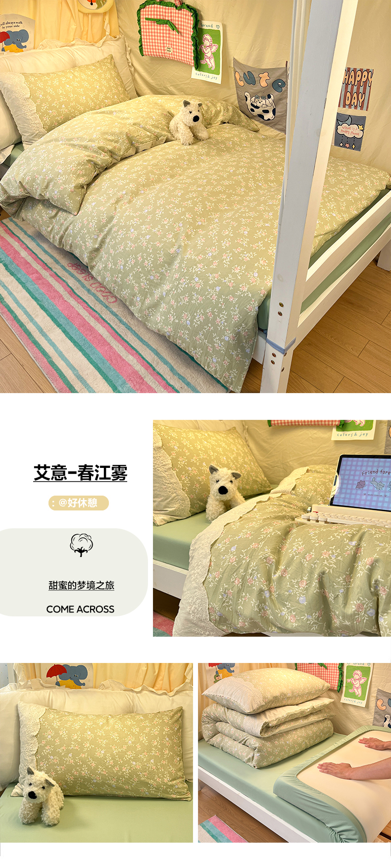 当前位置: 91家纺网 > 商品网购 > 床品套件 > 四件套 > 澜妃 2025新款糯叽叽水洗棉全棉蕾丝花边宿舍床上下铺三件套-艾意系列 艾意-春江雾