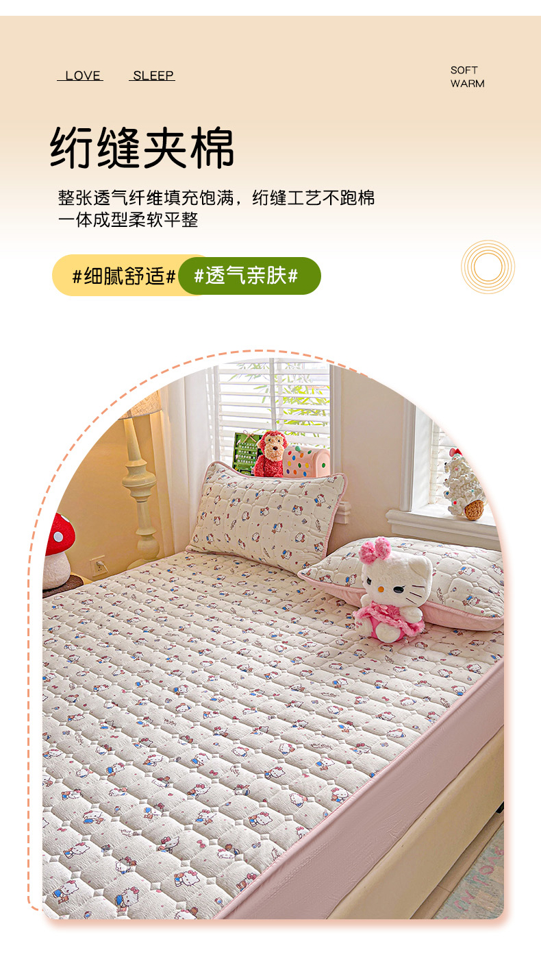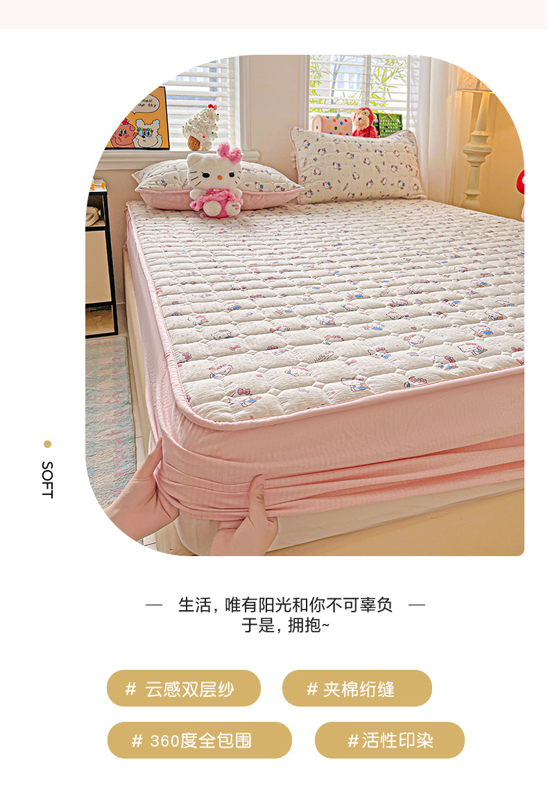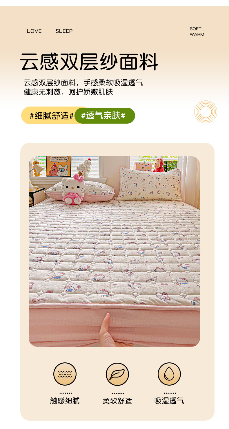 商品名称:星禾优选 2025新款三丽鸥云感双层纱夹棉床笠系列-大床款 床笠款-凯蒂与熊