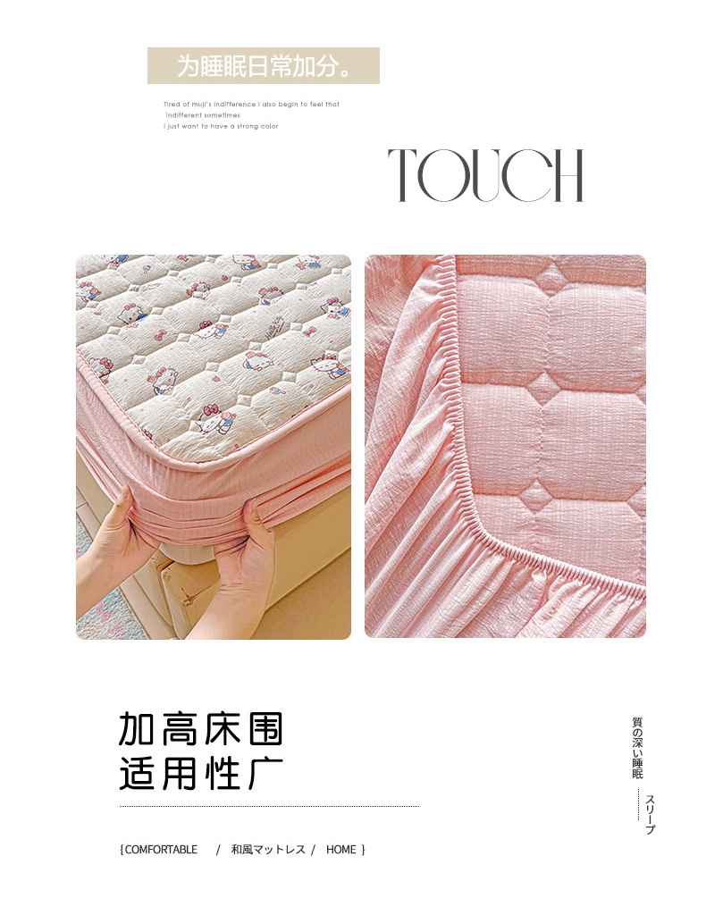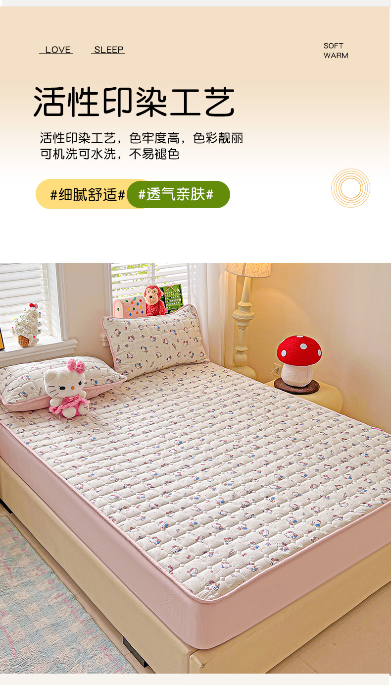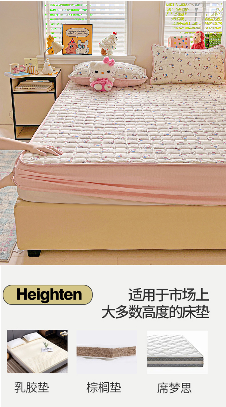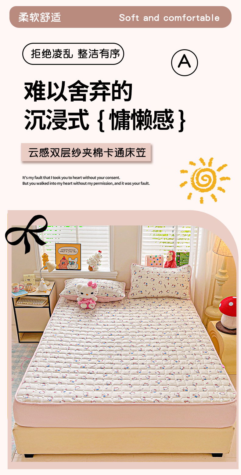 商品名称:星禾优选 2025新款三丽鸥云感双层纱夹棉床笠系列-大床款 床笠款-凯蒂与熊