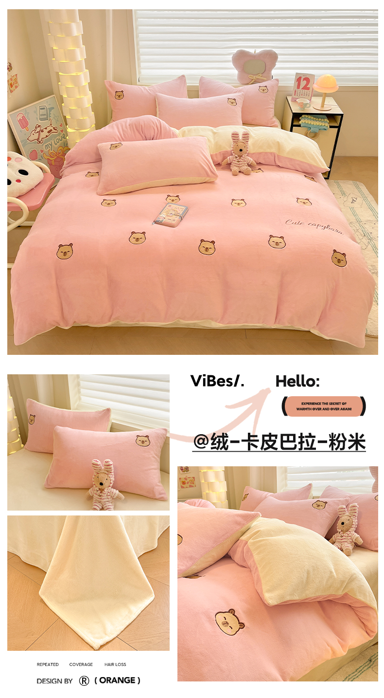 (总)如一 2025新款卡通毛巾绣系列牛奶绒四件套,卡皮柿子,爱心天使,豹纹黑皮,草莓灰猫,蛋糕小狗,粉格小猫,海绵宝宝,快乐企鹅,拉布饼干,蓝格黑猫,领结粉兔,苹果拉布,竖条西高,晚安小象,星星宝贝,星星木马,星星派对,星星苹果,星月猫咪,樱桃黑猫