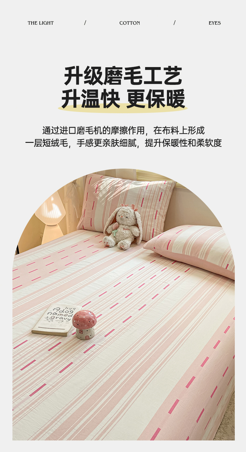 • 91家纺网 家纺一手货源 找家纺 灰鲸 2025新款全棉纯棉磨毛单床单 速律-粉