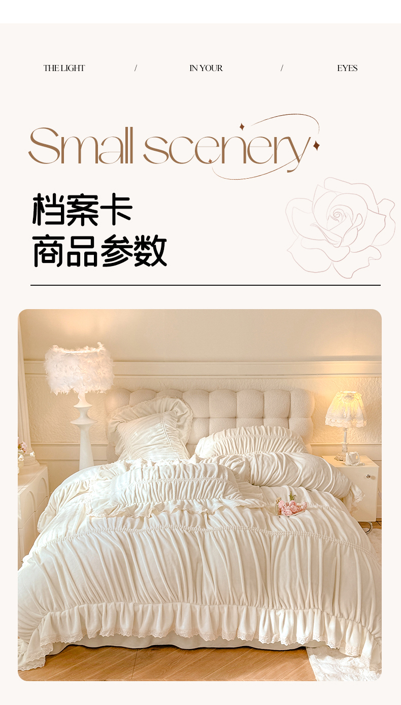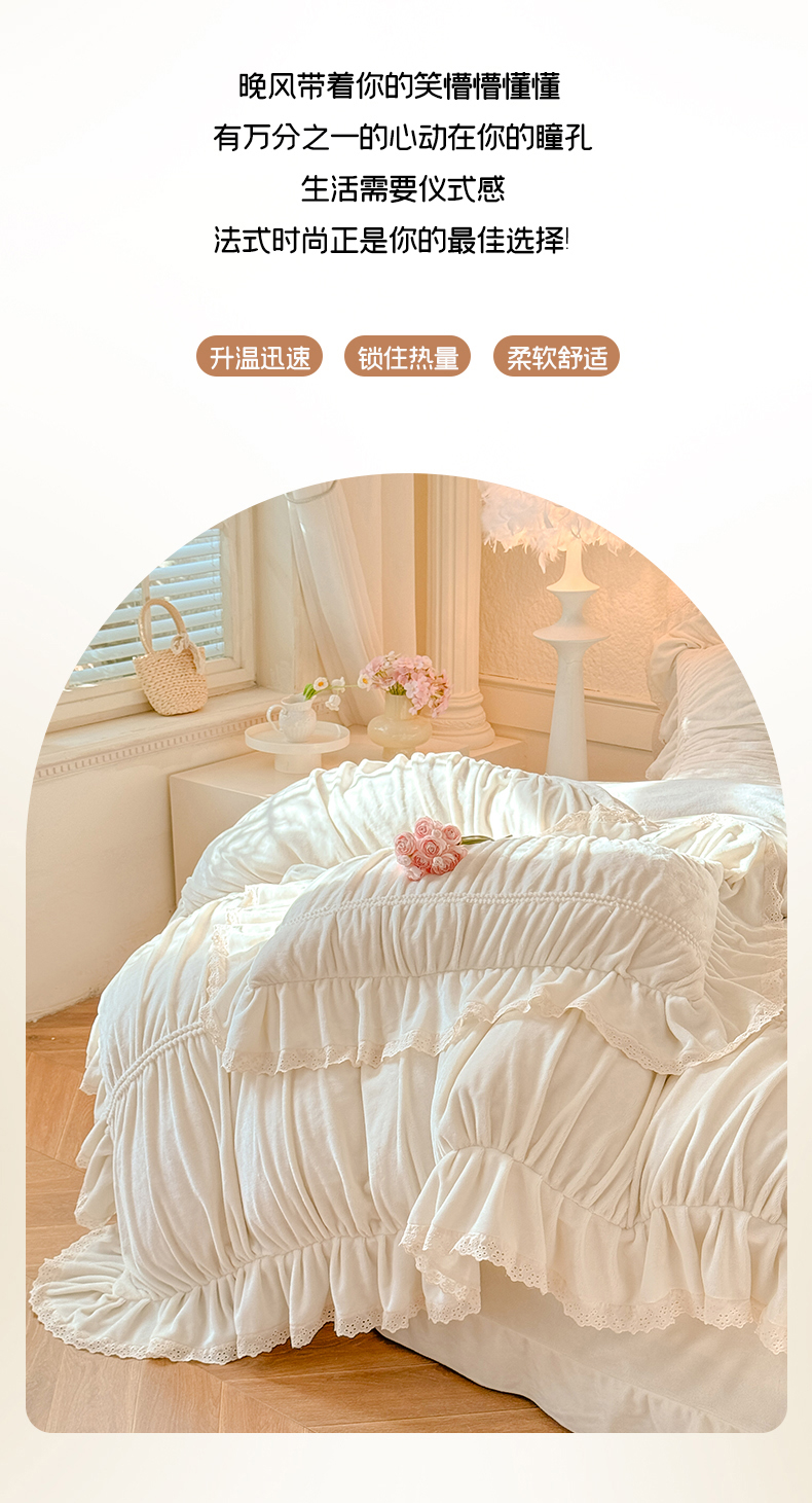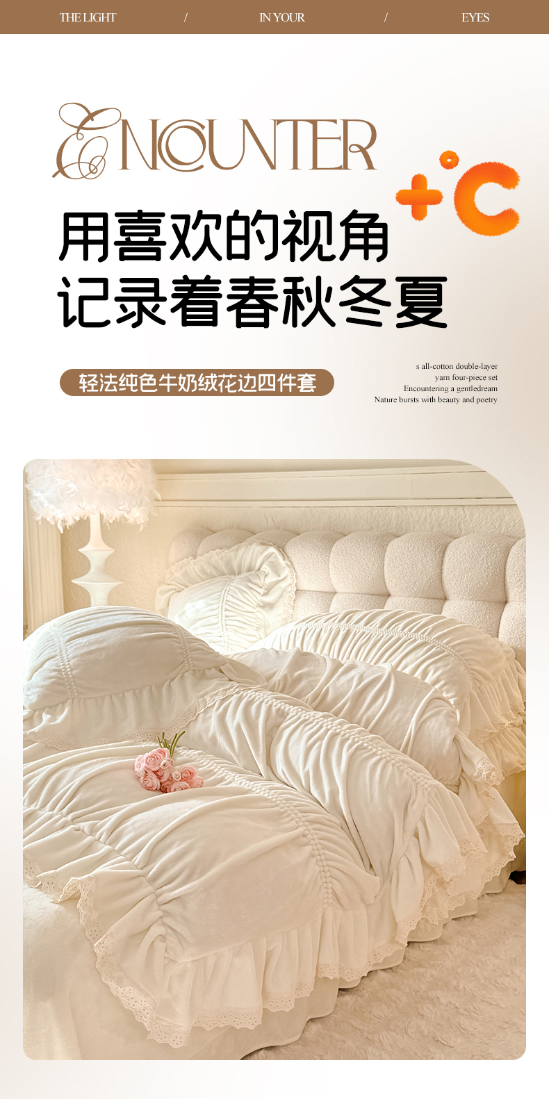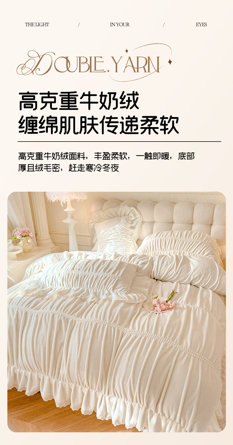 商品名称:满座家居 2025新款高克重230克糯糯绒牛奶绒工艺款消光牛奶绒四件套轻法式简约保暖四件套-洛可可 洛可可-奶白