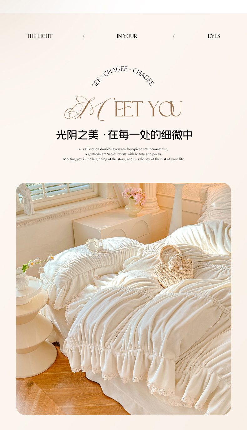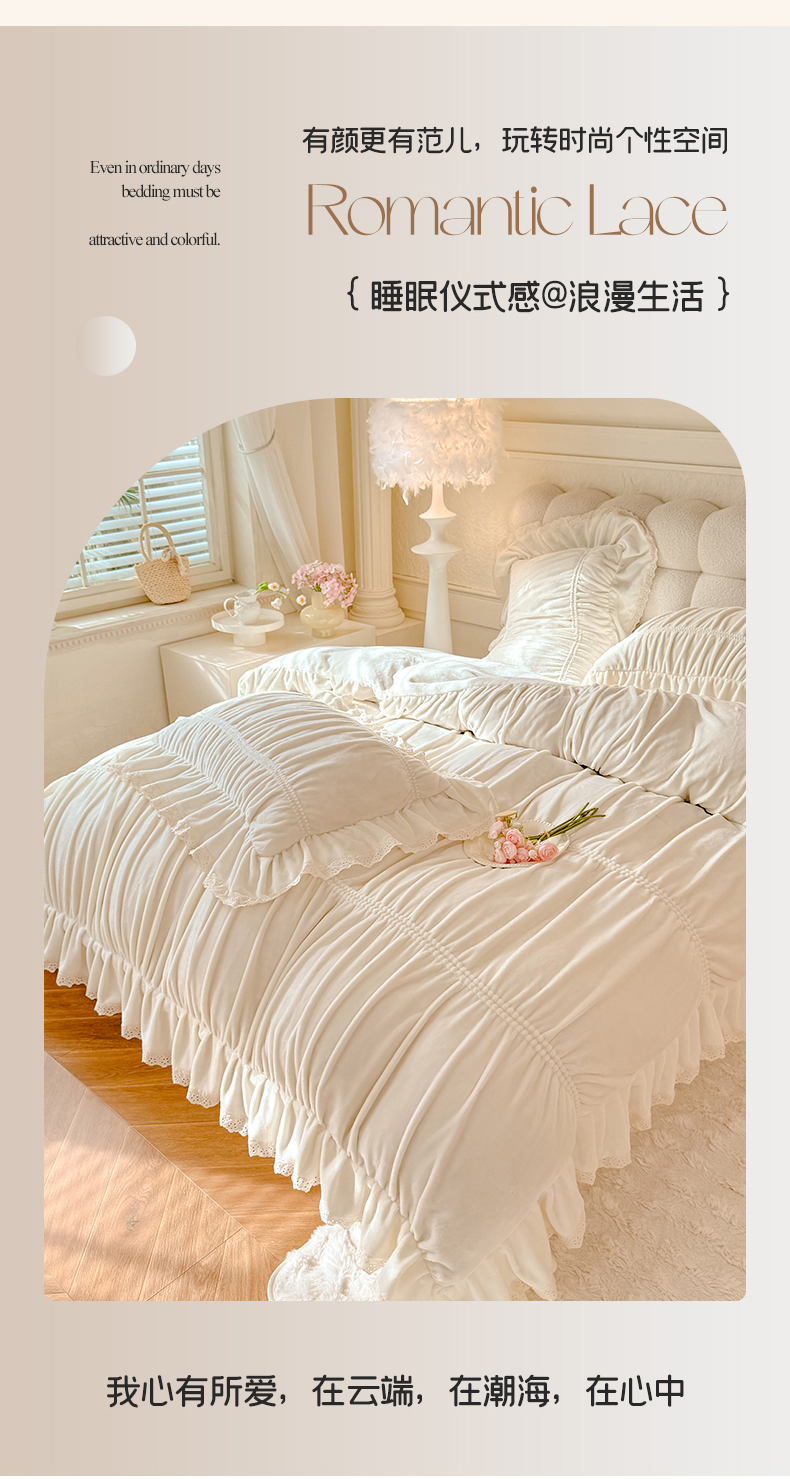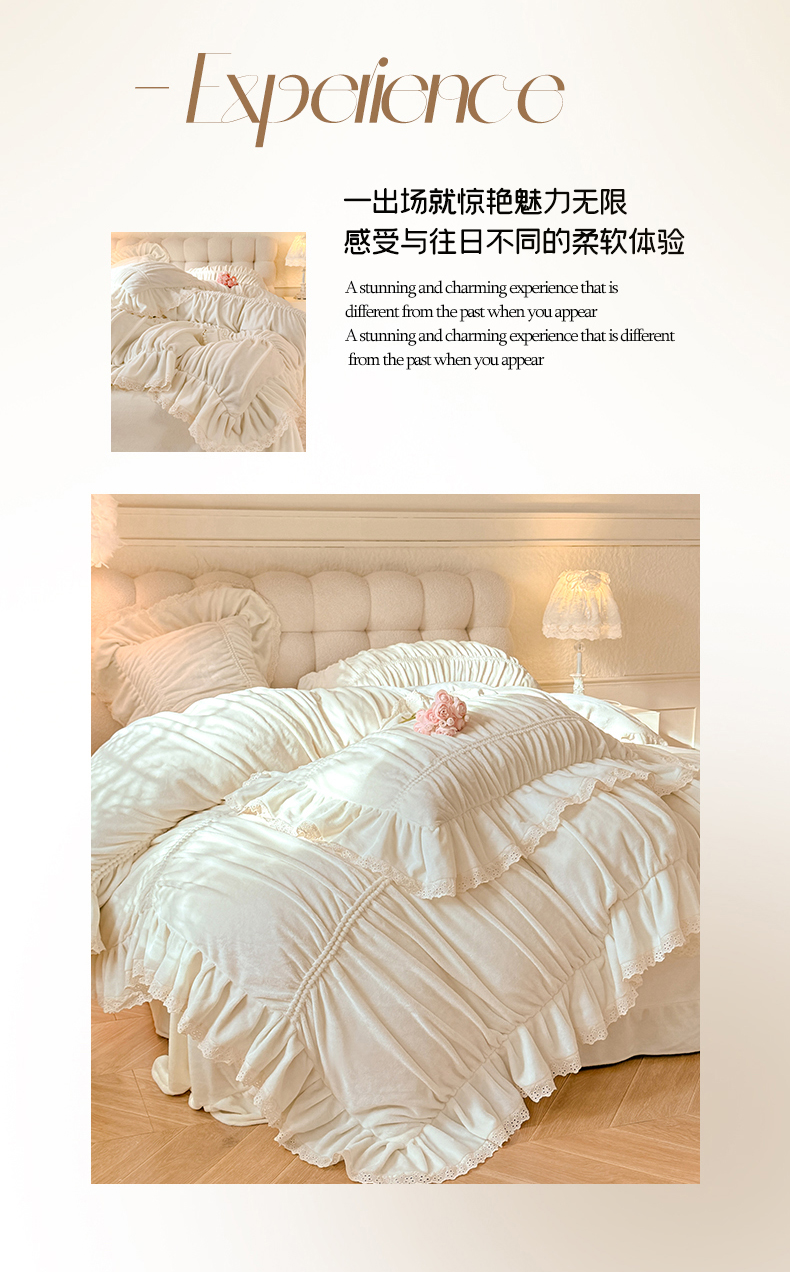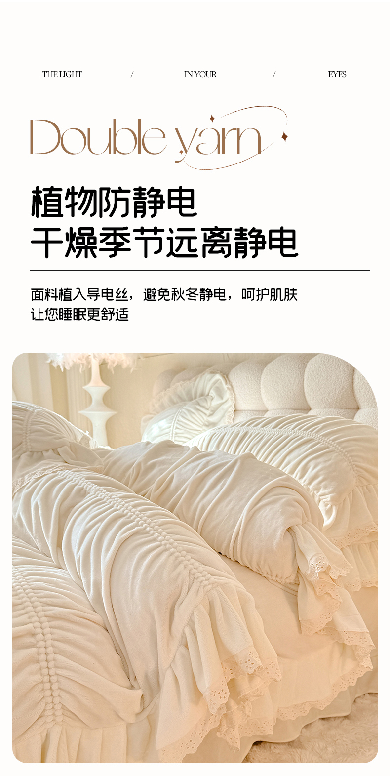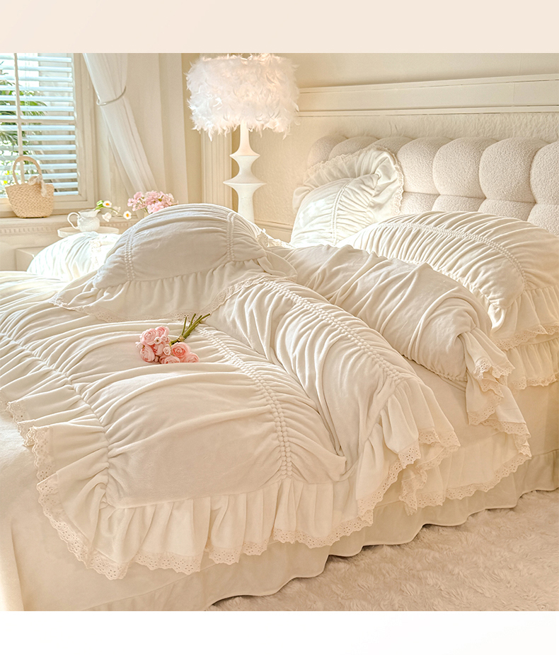 商品名称:满座家居 2025新款高克重230克糯糯绒牛奶绒工艺款消光牛奶绒四件套轻法式简约保暖四件套-洛可可 洛可可-奶白