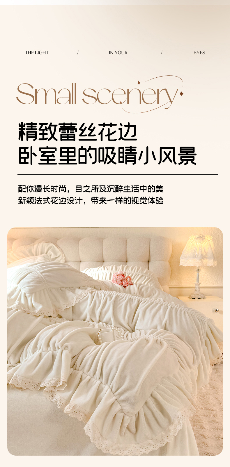 (总)满座家居 2025新款清新唯美木耳边加厚牛奶绒四件套雕花绒四件套,艾莎 粉,雏菊晨露 粉,田园风景 绿,蝶恋花 粉,邂逅,安妮 粉
