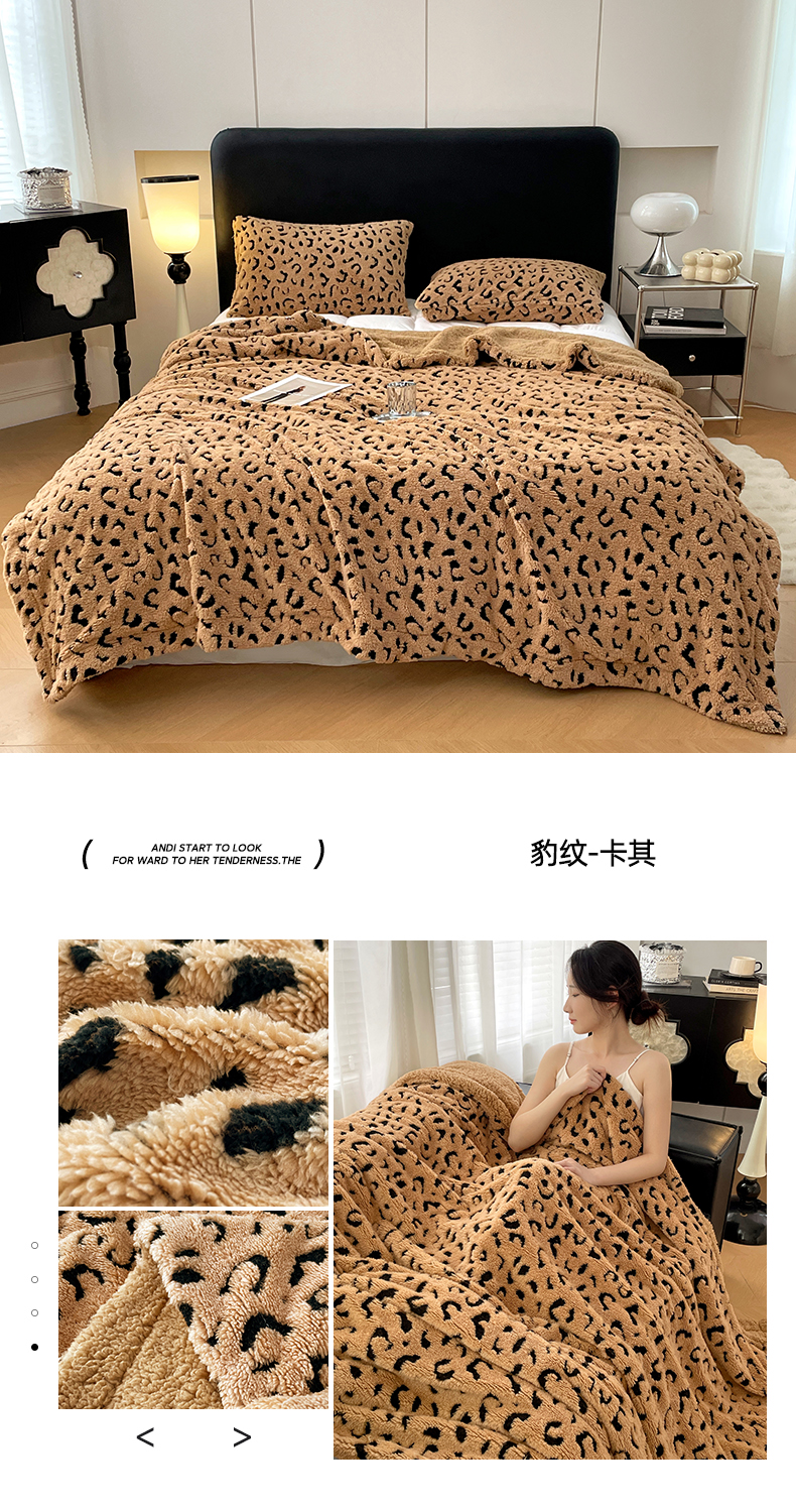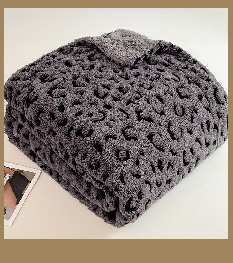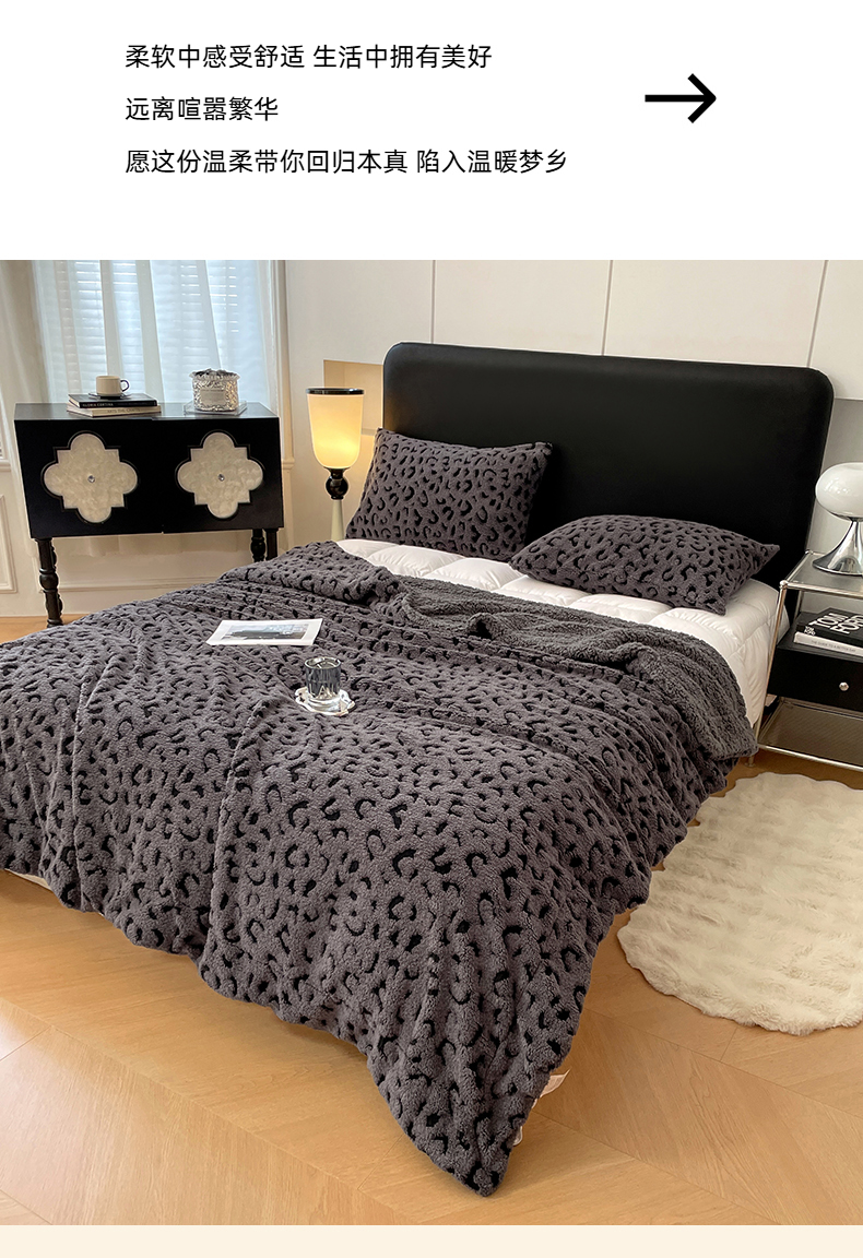 商品名称:楼兰公主毛毯专供 2025爆款阳离子豹纹双层单层羊羔绒跨境绒毯 豹纹-深灰