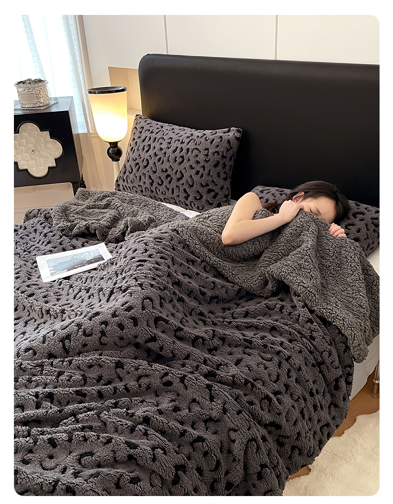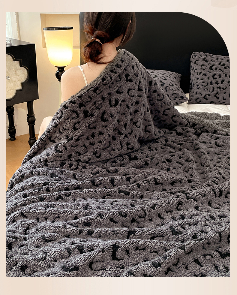 楼兰公主毛毯专供 2025爆款阳离子豹纹双层单层羊羔绒跨境绒毯 豹纹-深灰