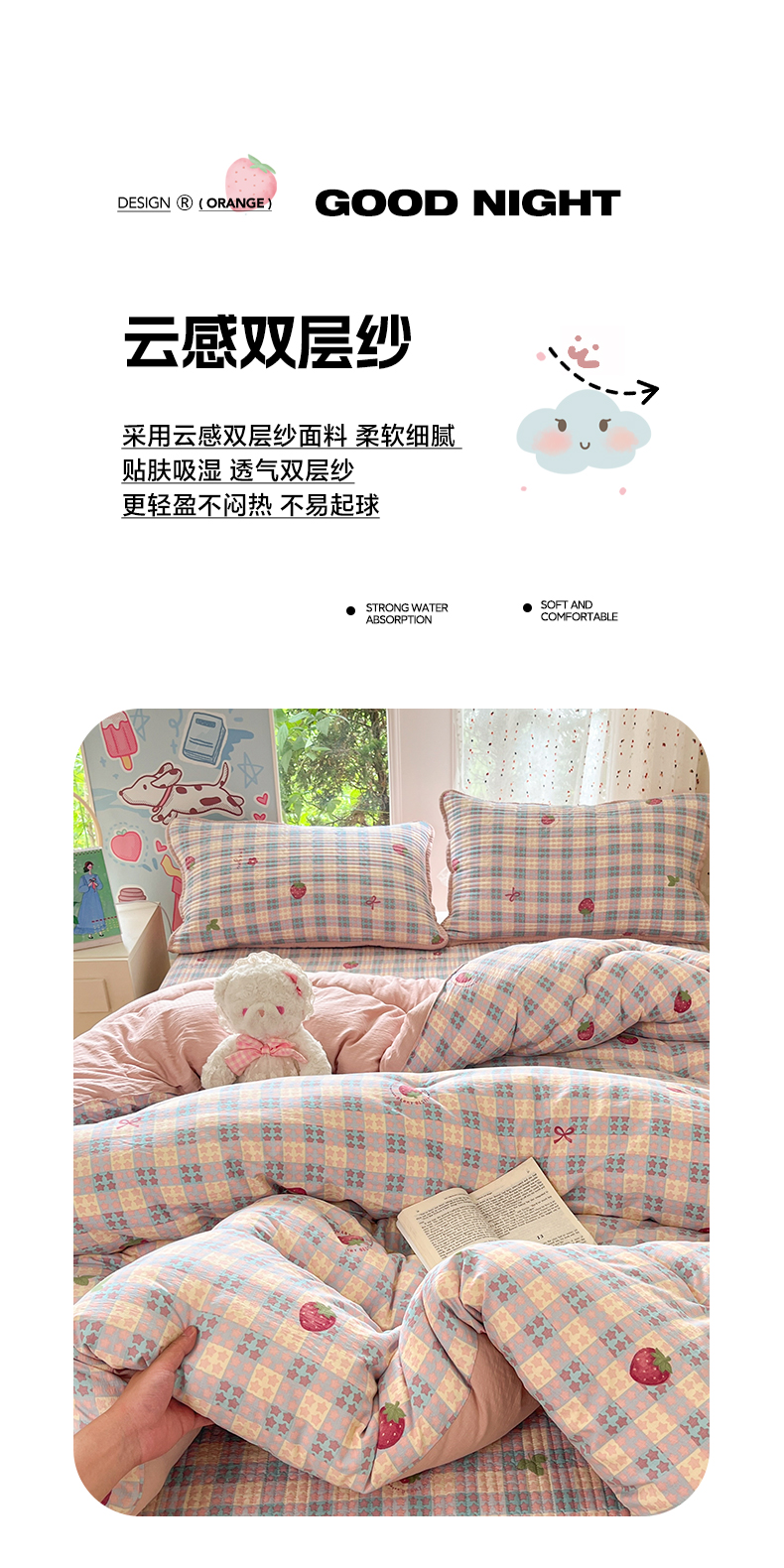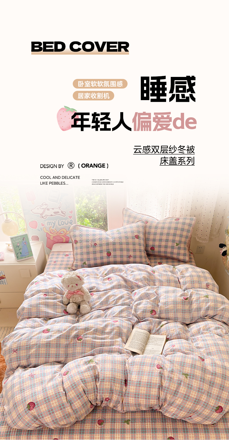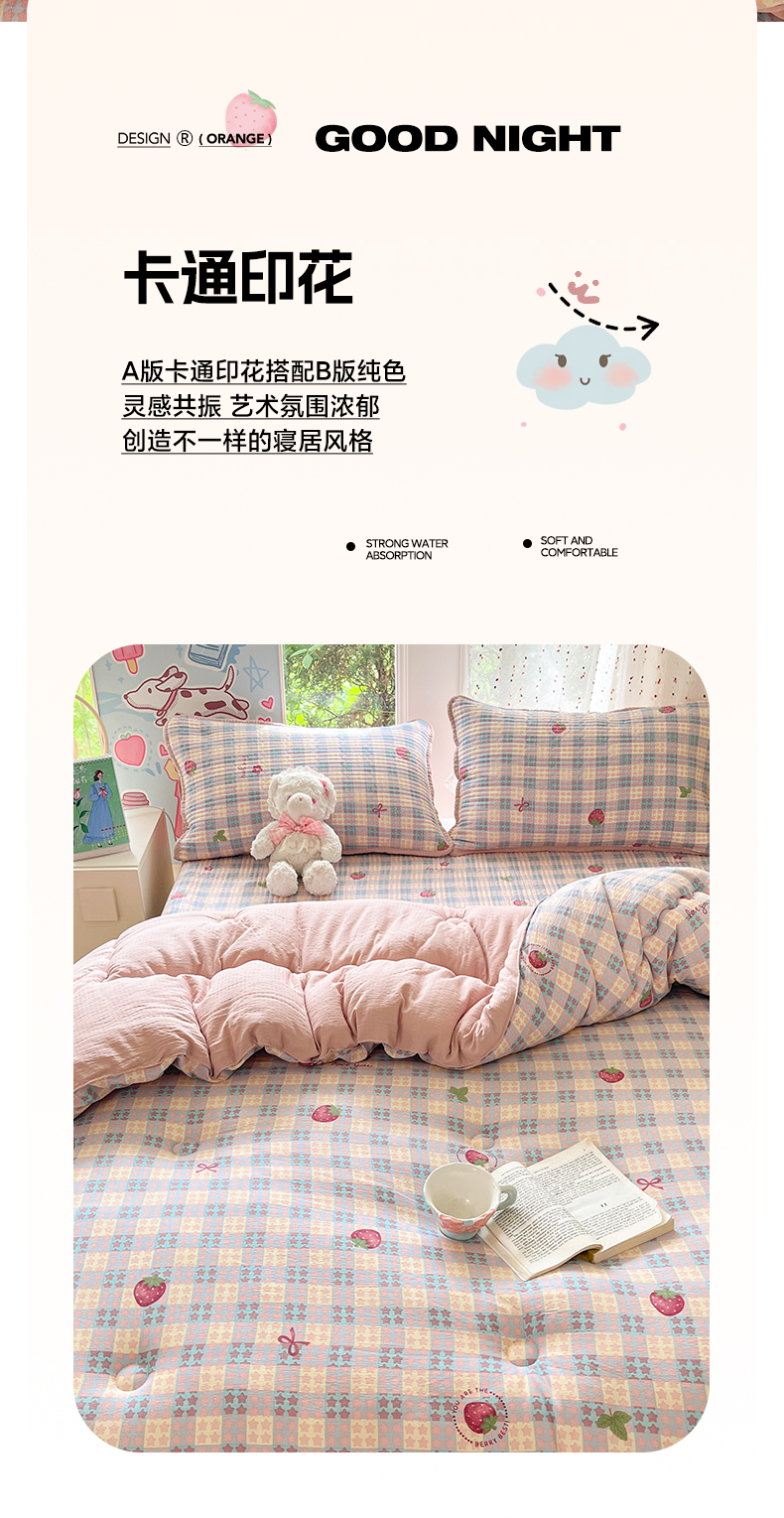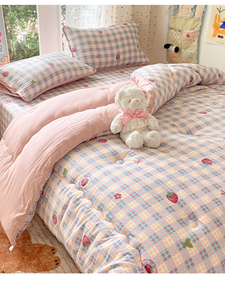 (总)澜妃 2025新款云感双层纱ins少女心可爱系加厚豆豆被被子被芯床盖暖梦(小红书推荐),彩带,草莓块,粉奶油,轻松象,桃恋曲,田园兔,条条心,童话集,线条兔,小蓝蝶,新新酱,一只兔,紫藤香