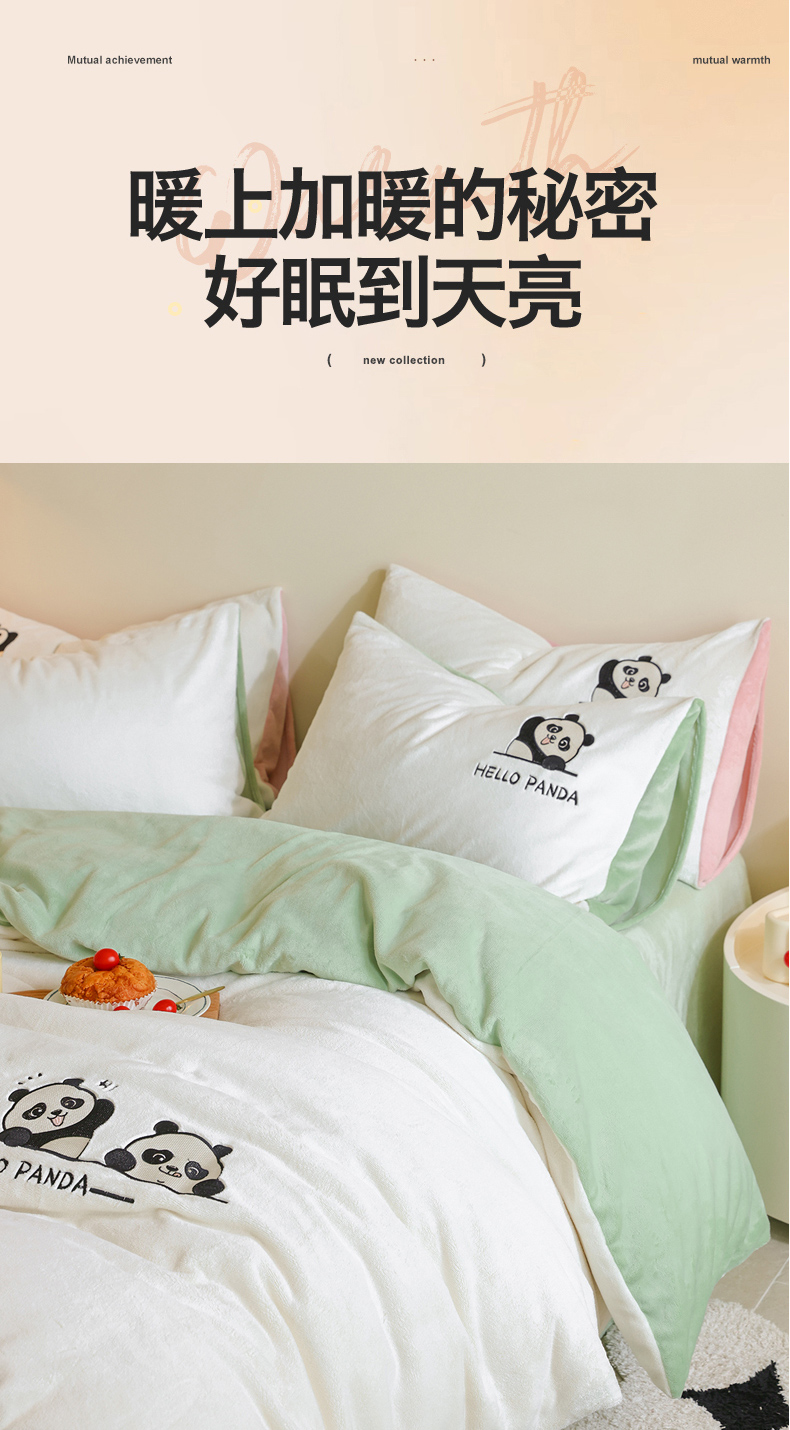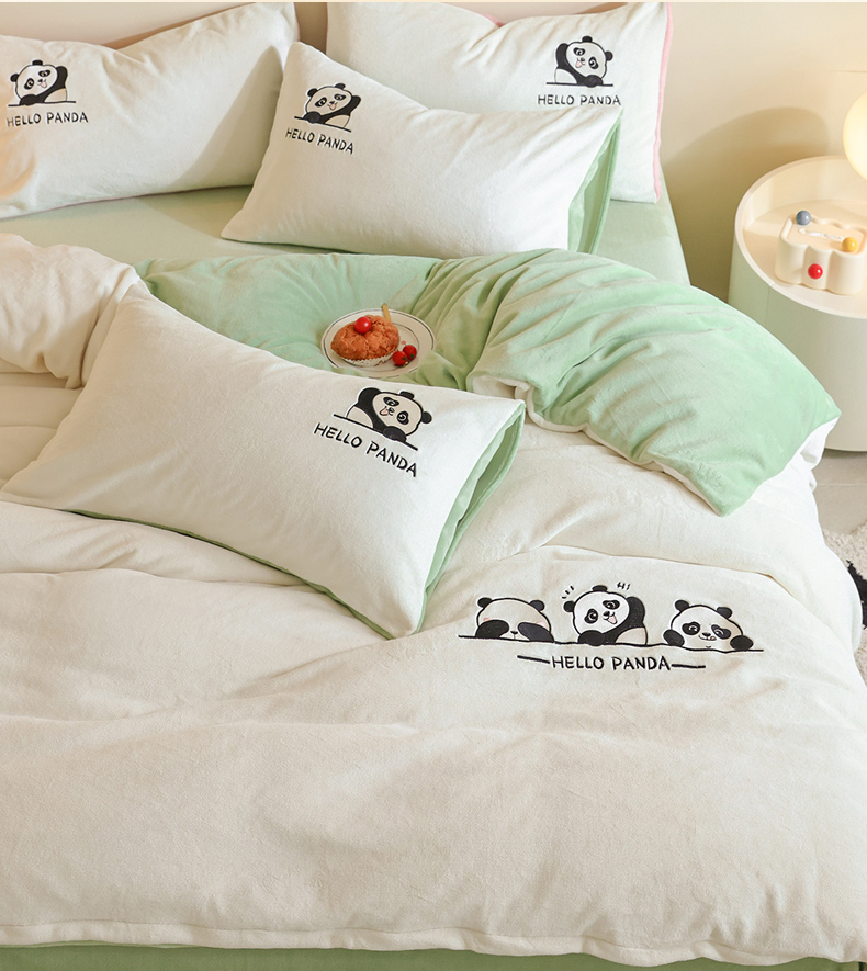 当前位置: 91家纺网 > 商品网购 > 床品套件 > 四件套 > 牛奶绒四件套 > ONE TWO ONE 121 新品【牛奶绒刺绣四件套】2025毛毯被子四件套单件床单被套床笠珊瑚绒牛奶绒冬被法兰绒兔毛绒panda panda-浅绿