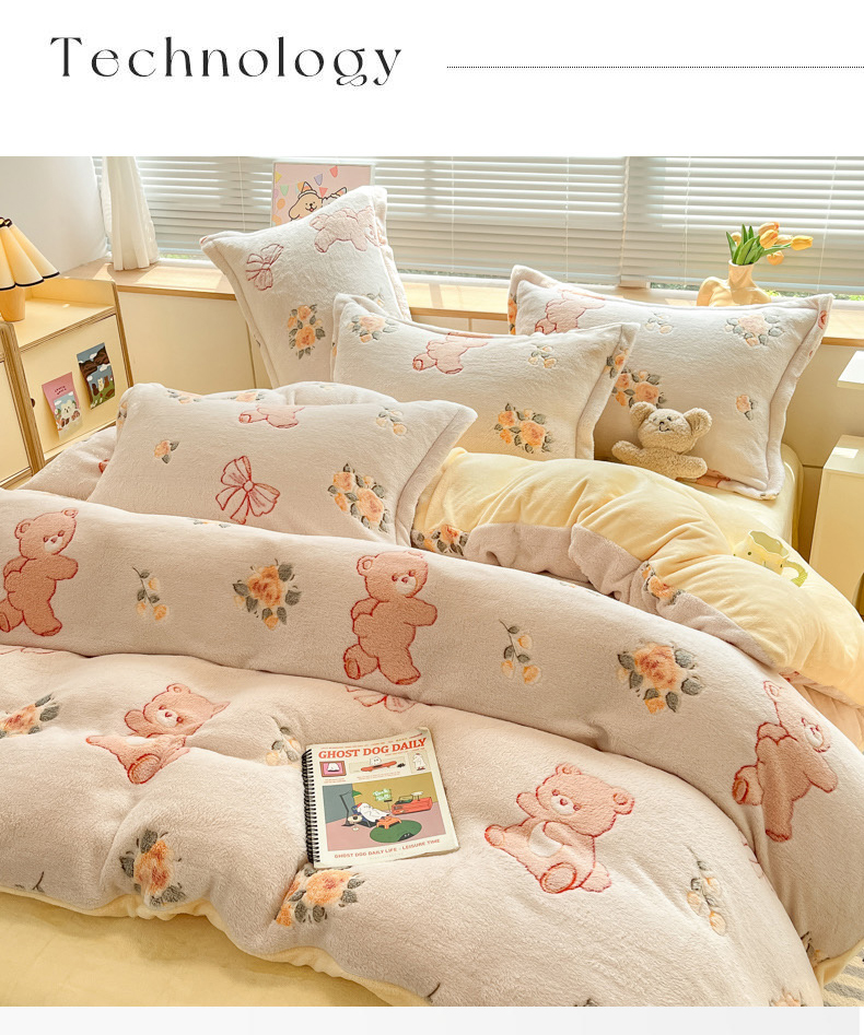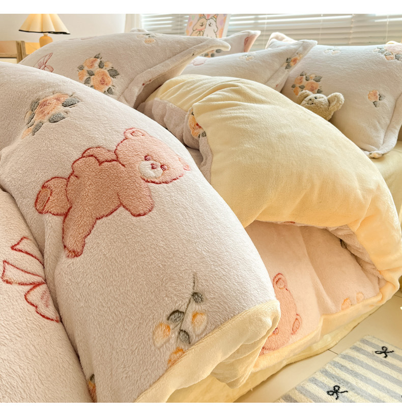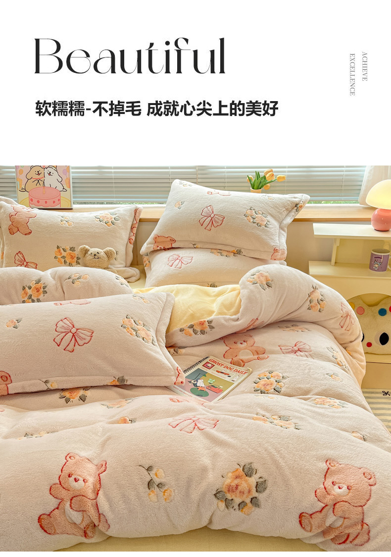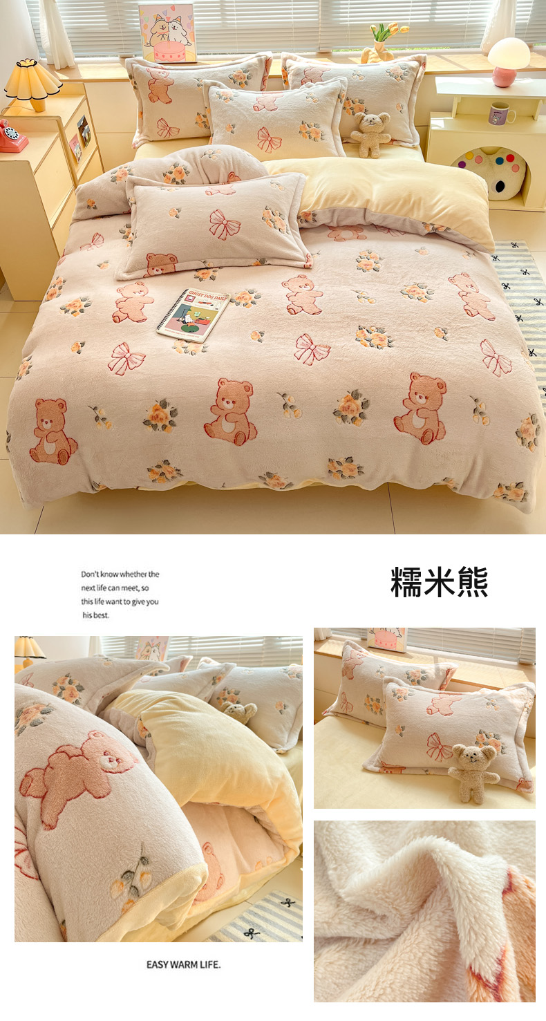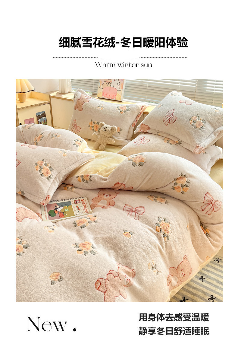 商品名称:慕尚家纺 2025新款高克重印花雪花绒被套单件 糯米熊