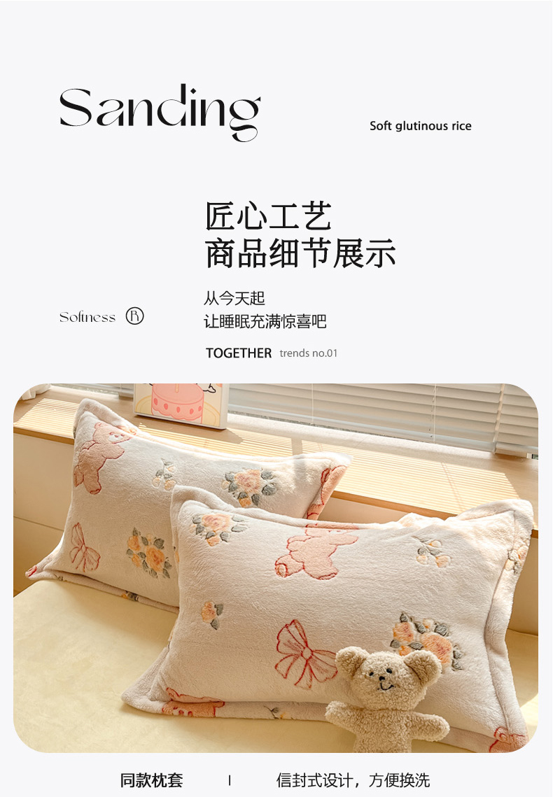 (总)慕尚家纺 2025牛奶绒床盖床褥被套三件套四件套--单枕套,图图狗,安逸,宝贝熊仔,布兰卡,冬暖,菲娜,古雅,蝴蝶花,蝴蝶小兔,花美,花园兔,开心狗,快乐熊猫,丽娜,梦蝶,摩登花园,苹果小熊,奇妙猫,生态叶,苏格兰,甜美冬日,鲜花小兔,醒醒兔,幸运花