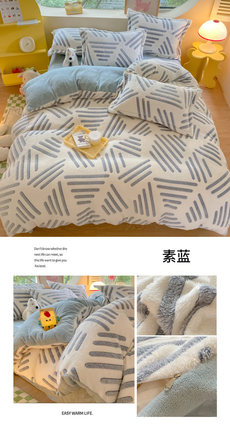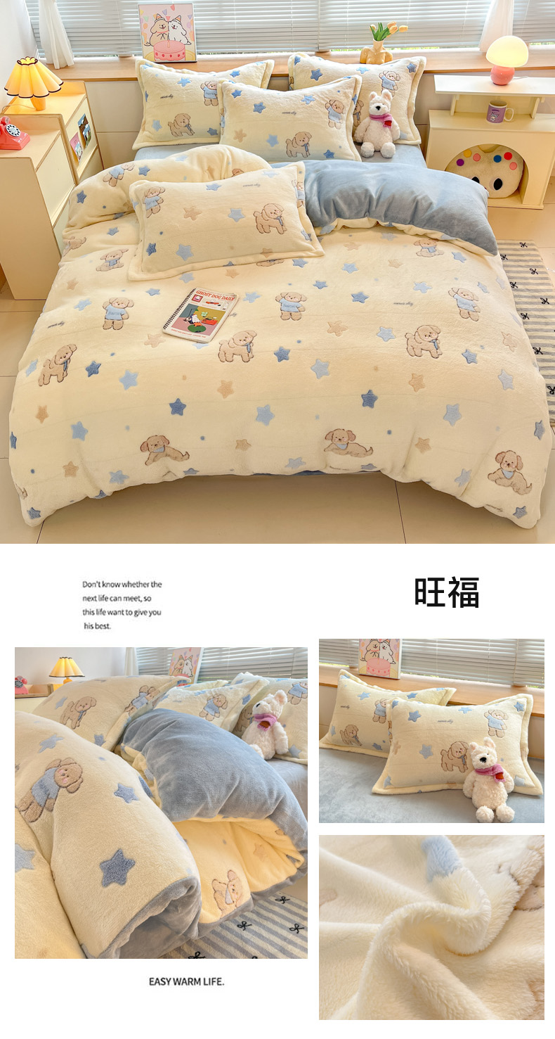 (总)慕尚家纺 2025新款豆豆绒刺绣四件套,大耳狗 白蓝,玫瑰 白粉