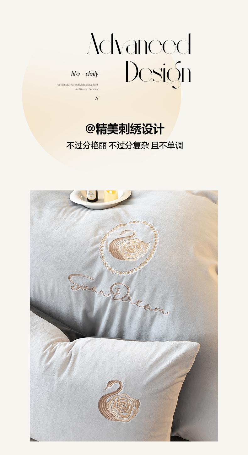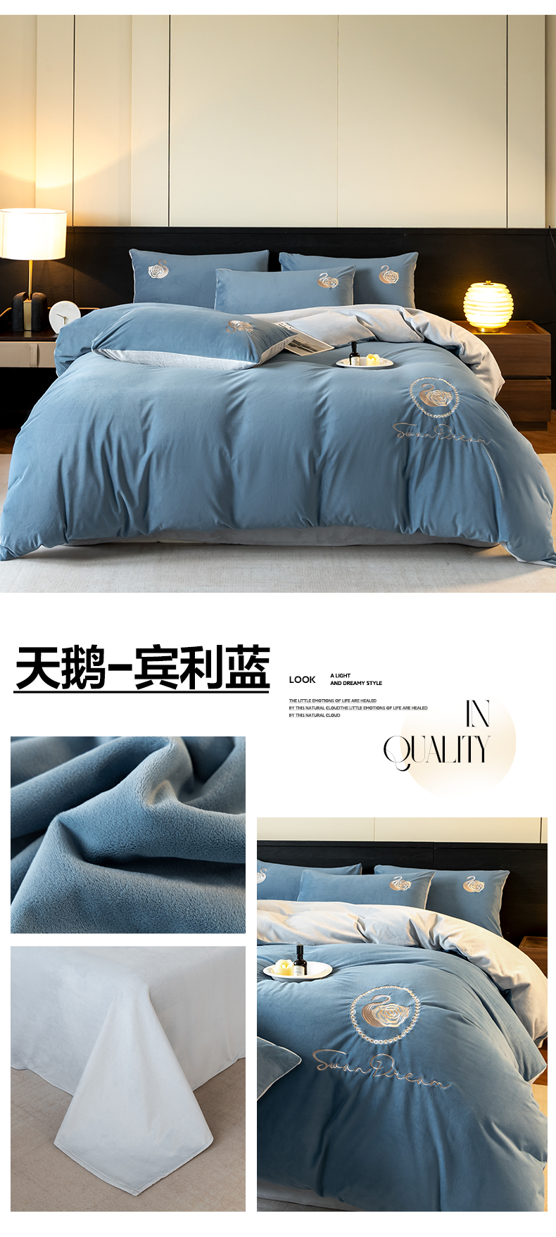 当前位置: 91家纺网 > 商品网购 > 床品套件 > 四件套 > 水晶绒四件套 > 如一 2025新款水晶绒双拼刺绣四件套-天鹅 天鹅-星辰银
