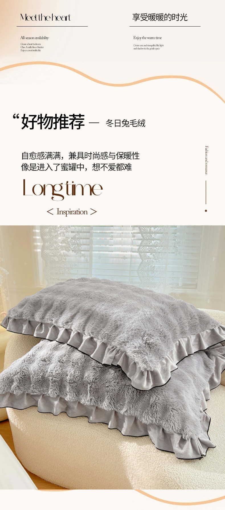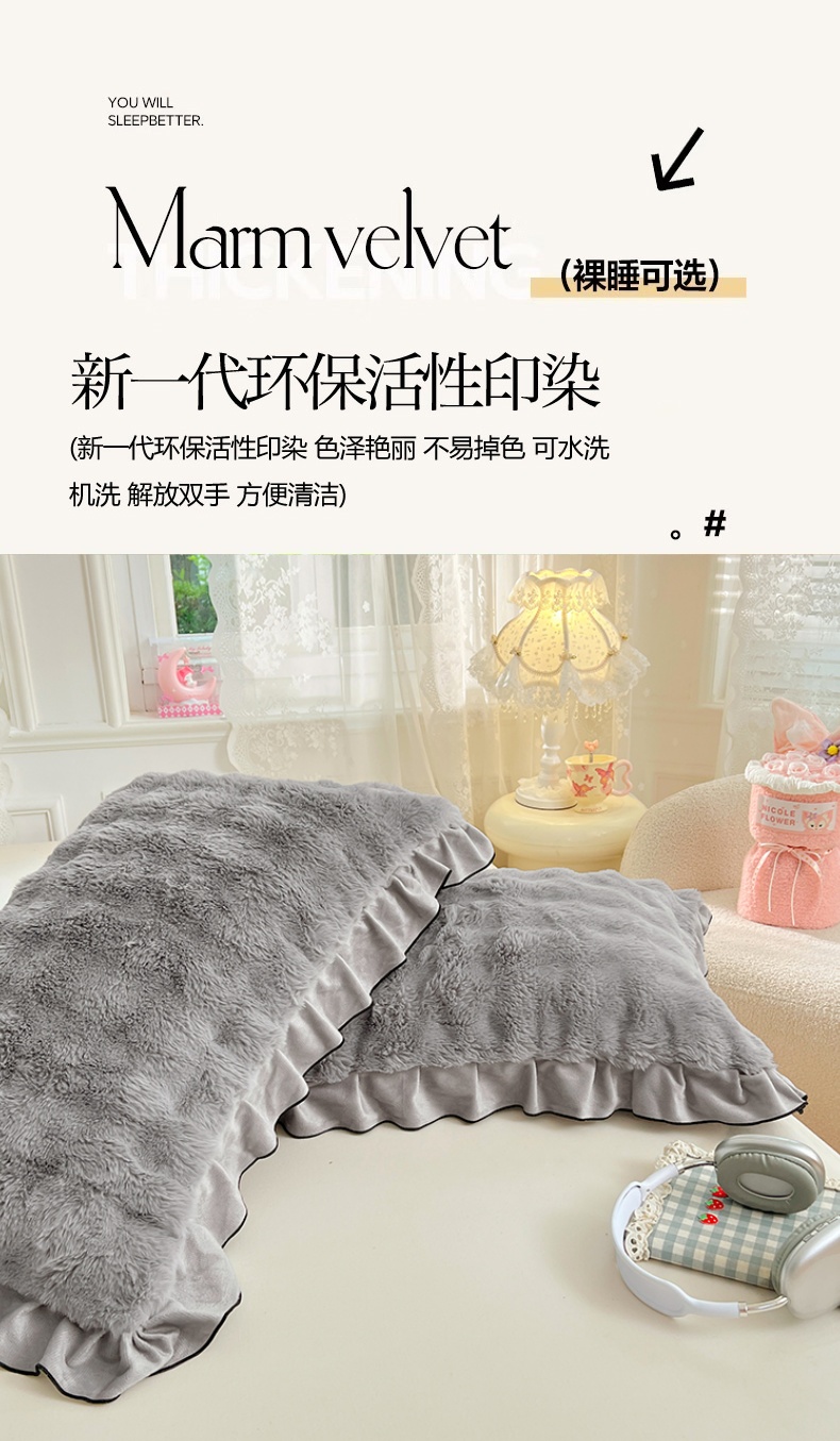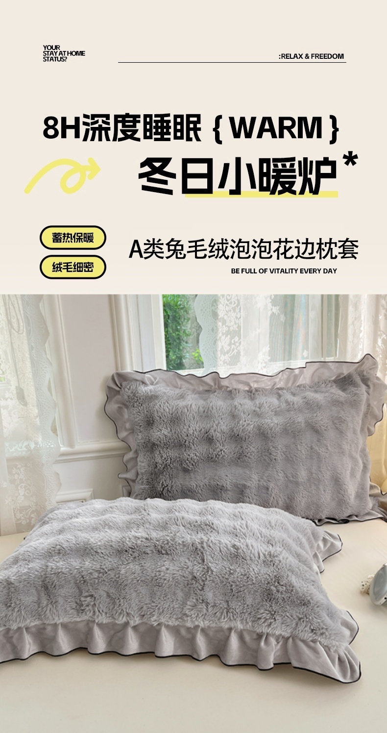 • 91家纺网 家纺一手货源 找家纺 梦舒羽 2025新款兔毛绒单人枕套牛奶绒枕芯套雪花绒宿舍枕头套-泡泡 兔毛绒泡泡花边款-烟雨灰
