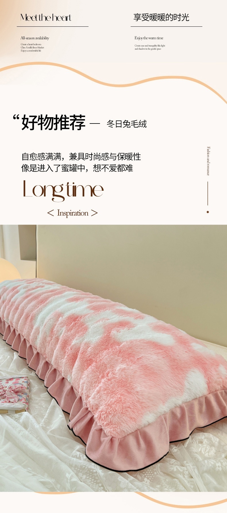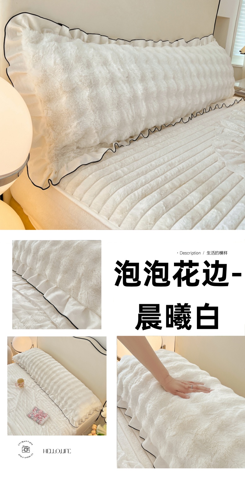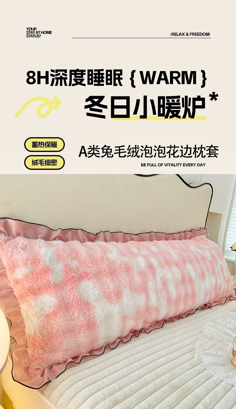 • 91家纺网 家纺一手货源 找家纺 梦舒羽 2025新款兔毛绒花边双人枕套牛奶绒加长情侣枕芯套雪花绒枕头套-泡泡 兔毛绒泡泡花边款-梦幻樱粉