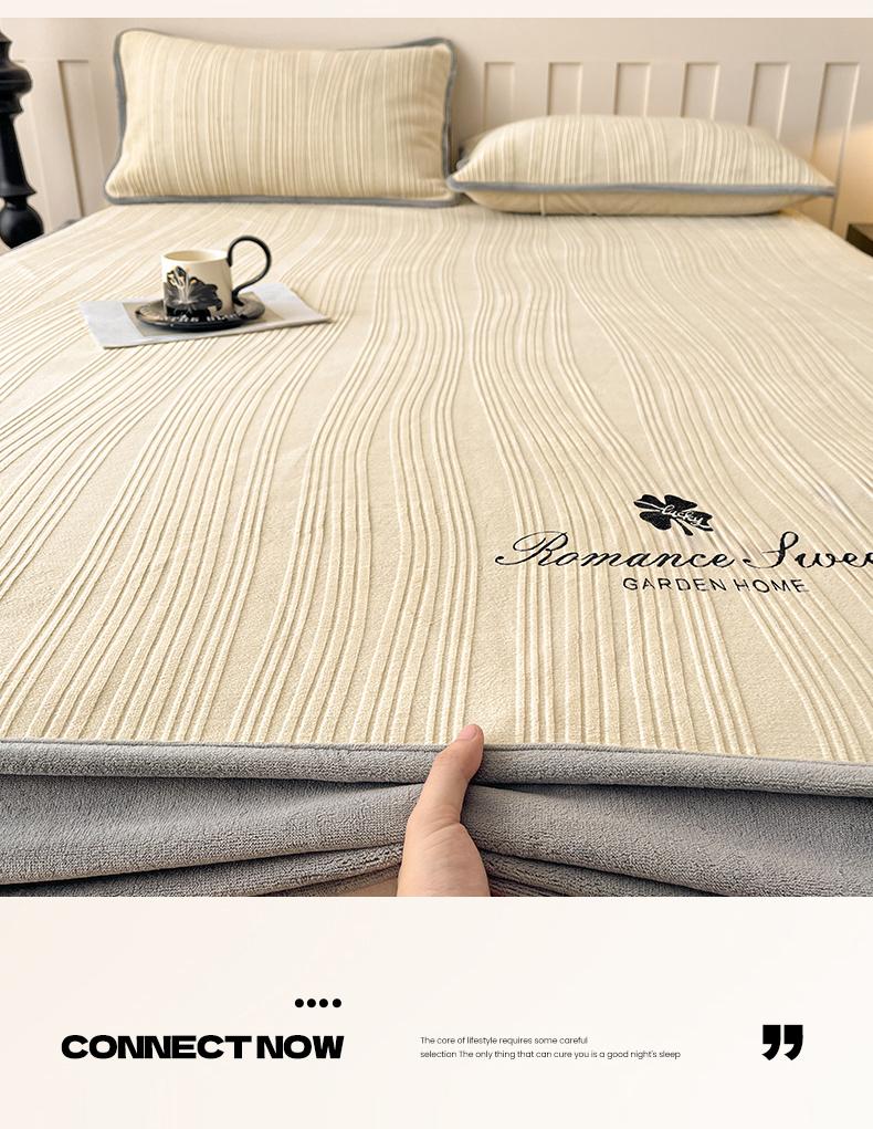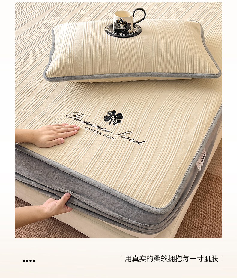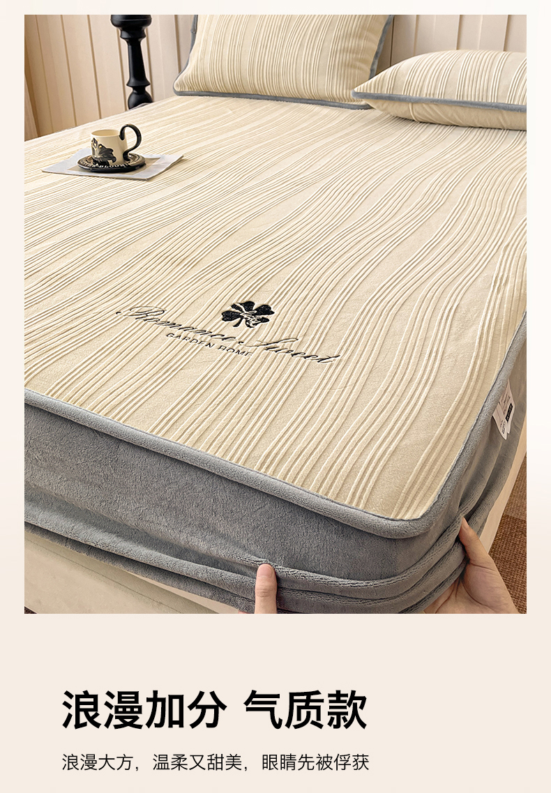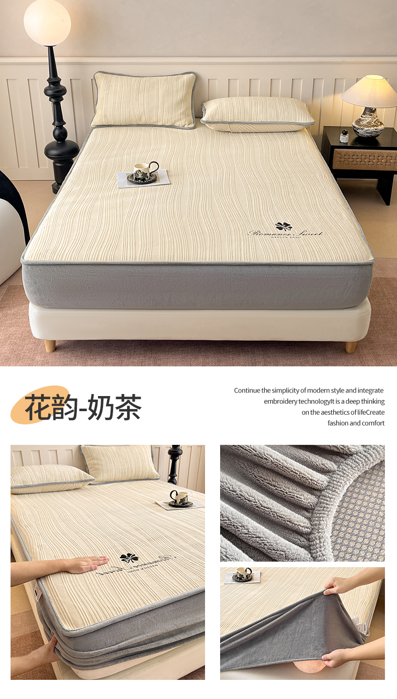 笙意家纺 2025新款A类加厚牛奶绒烂花复合床笠 花韵-奶茶
