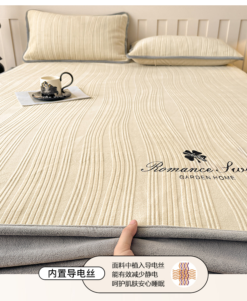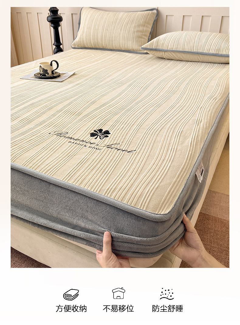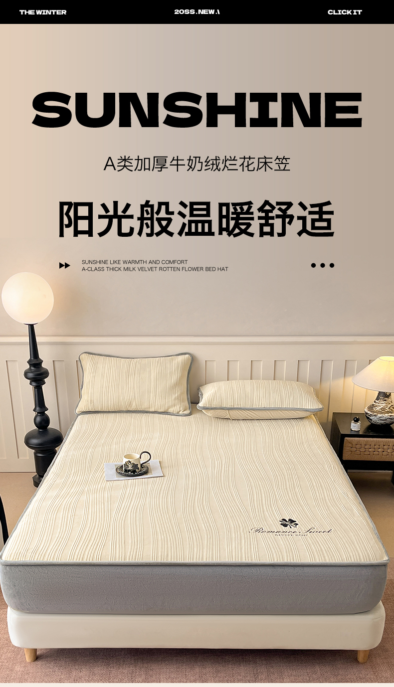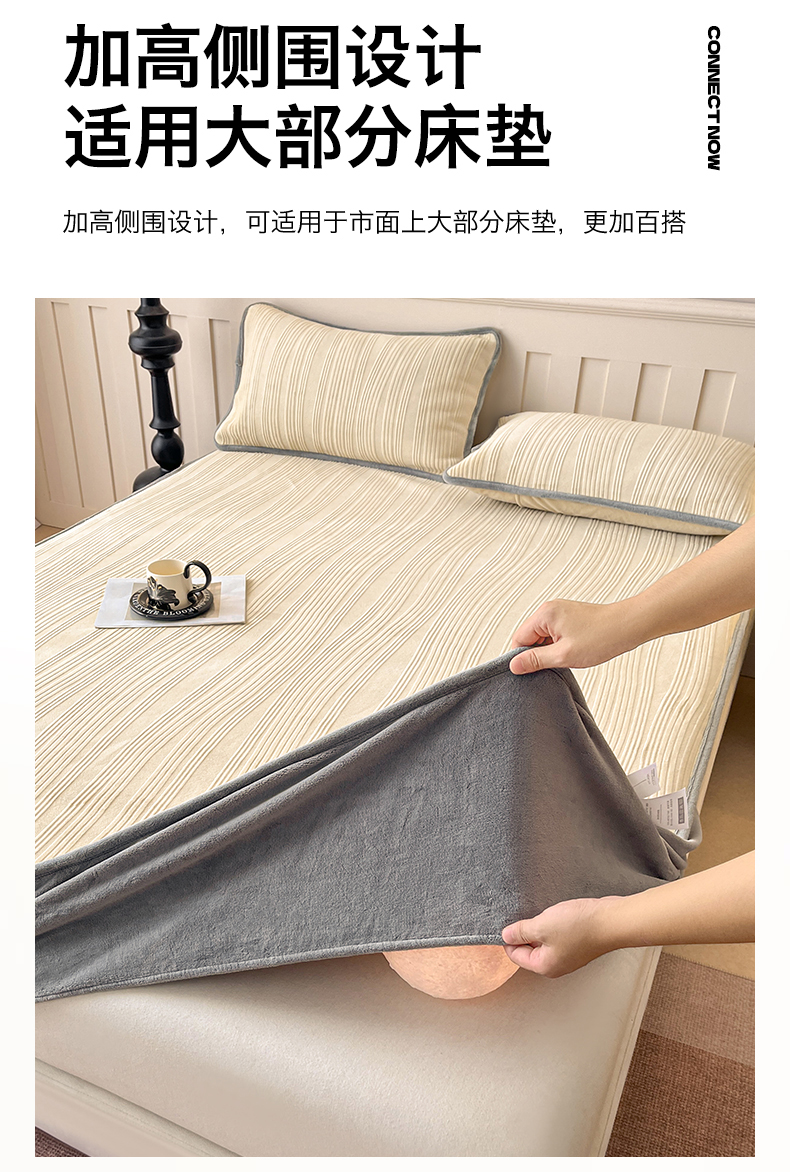 笙意家纺 2025新款A类加厚牛奶绒烂花复合床笠 花韵-奶茶