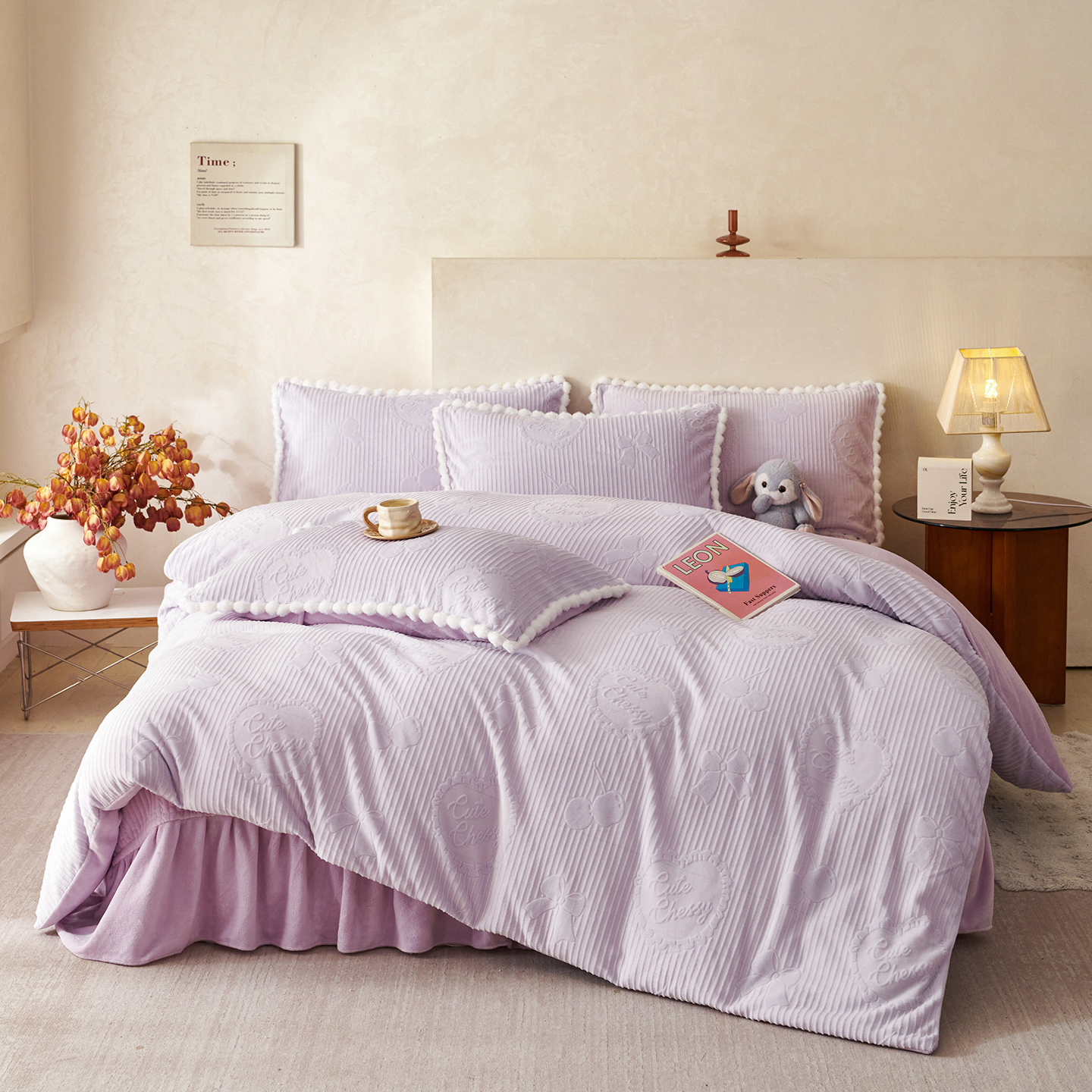 (总)乐野家居 2025年新款轻法式甜心蝴蝶结高克重提花牛奶绒床盖四件套,甜心蝴蝶结-兰,甜心蝴蝶结-白,甜心蝴蝶结-粉,甜心蝴蝶结-紫