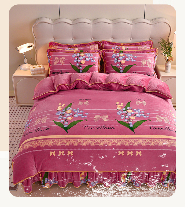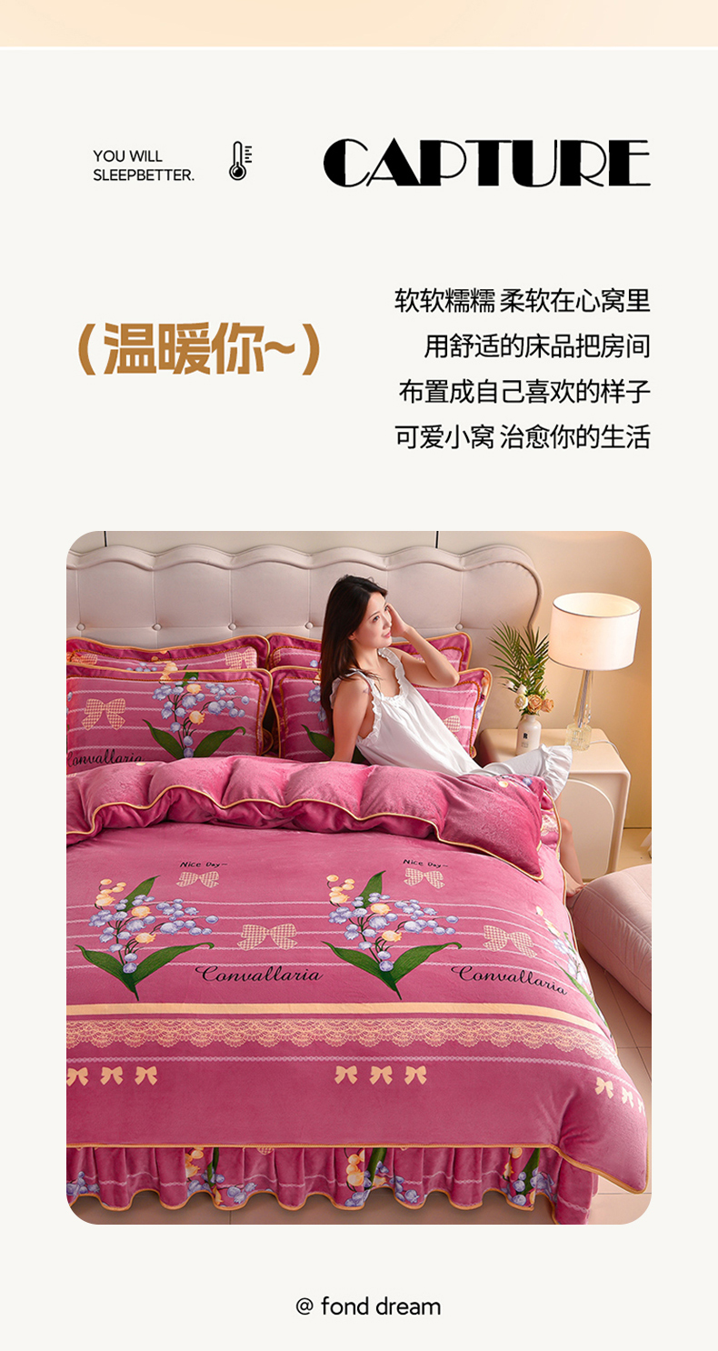 (总)佳一 2025新款赫本风牛奶绒床裙款花边四件套,布拉格,玫瑰花园,紫薇,栀子风情,樱花,印象巴黎,山茶花,米兰春天,陌上花开,罗曼花香,海棠粉,光影