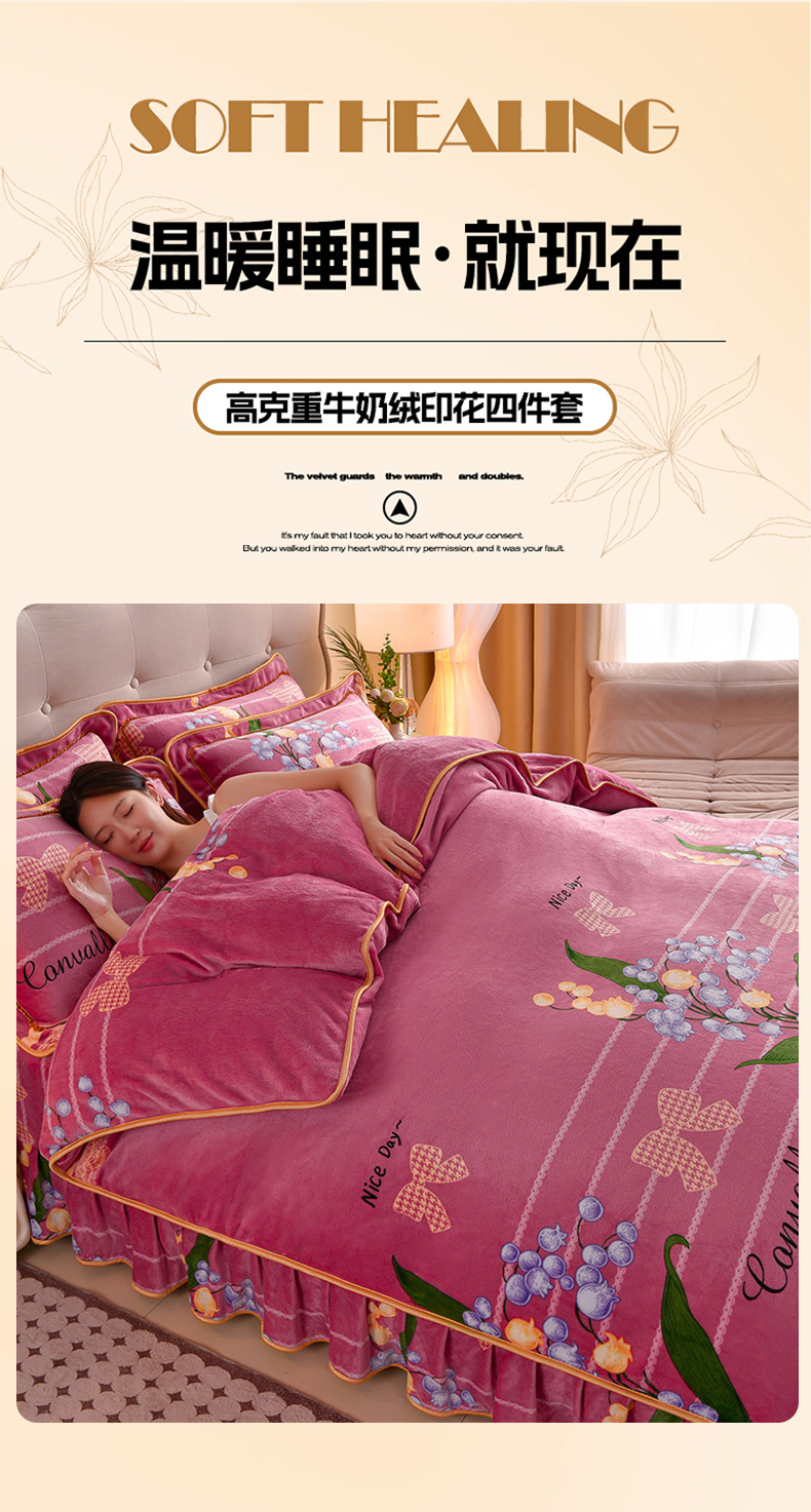 佳一 2025新款高克重8-9斤印花牛奶绒四件套 国色天香,国色天香