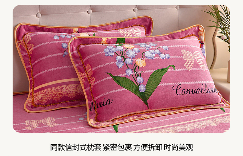 佳一 2025新款高克重8-9斤 印花牛奶绒四件套 玫瑰之吻,玫瑰之吻